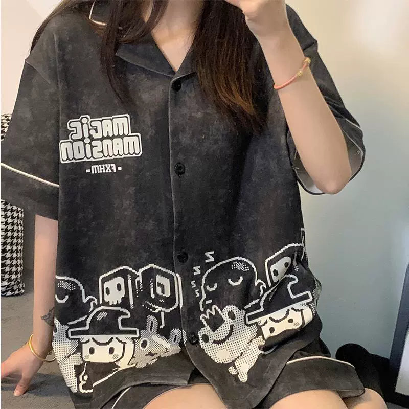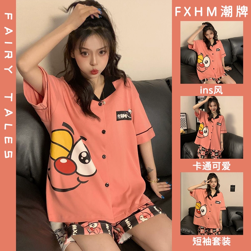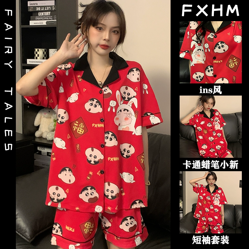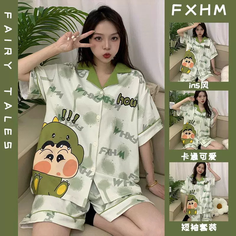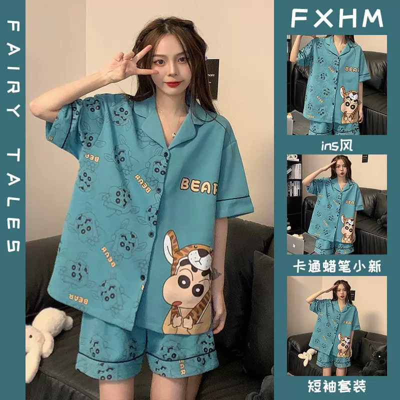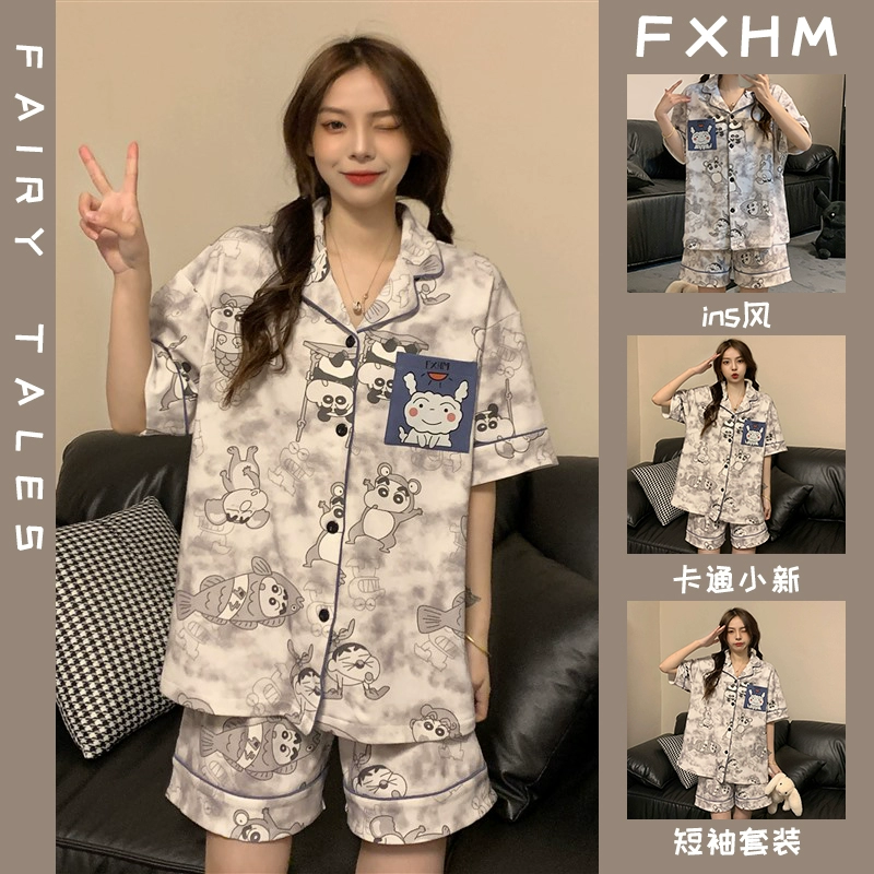 | nameOriginal | Summer short-sleeved pajamas for women ins cartoon Crayon Shin-chan home clothes printed student loose large size lapel suit |