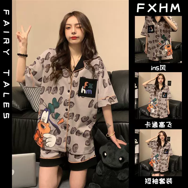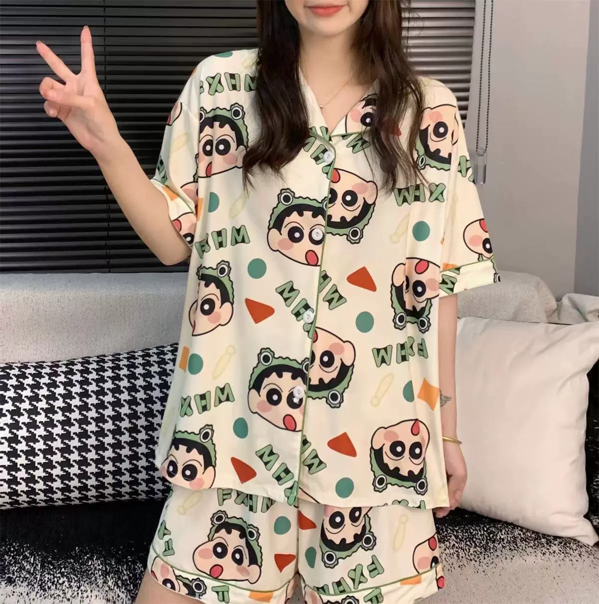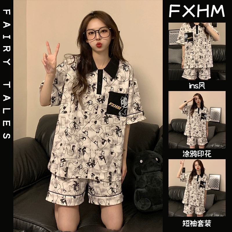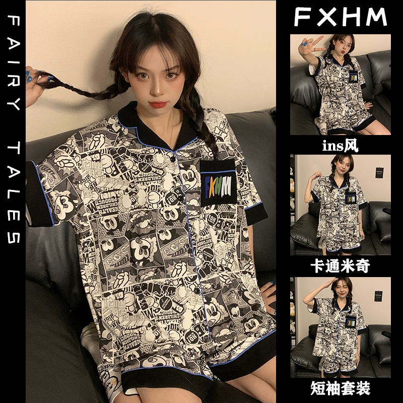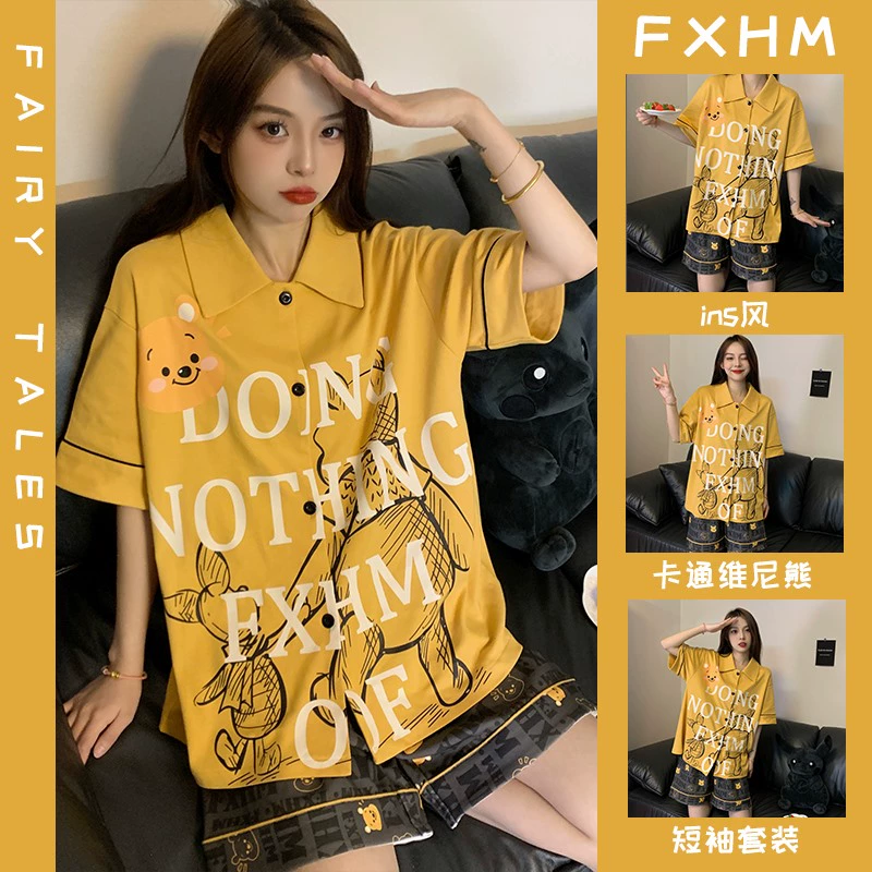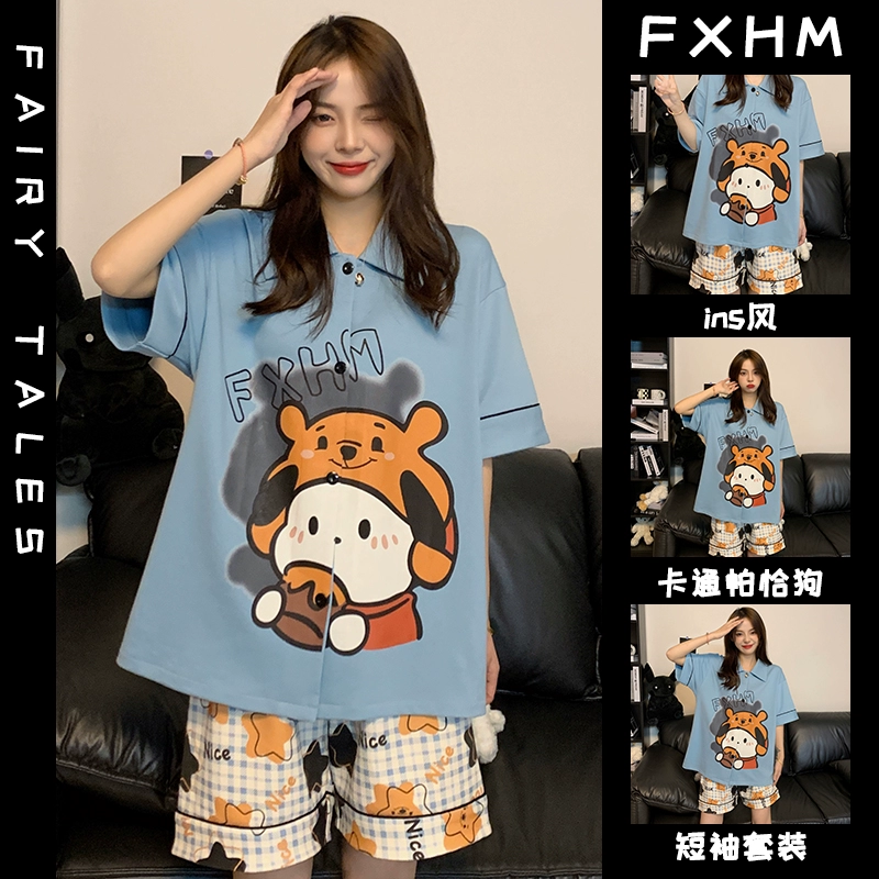 | nameOriginal | Summer short-sleeved pajamas for women ins cartoon Crayon Shin-chan home clothes printed student loose large size lapel suit |