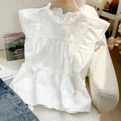 | nameOriginal | Summer Short-sleeved Pure Cotton White Western Style Thin Girl Children's Top Shirt Shirt Doll Shirt Children's Wear Sleeveless |