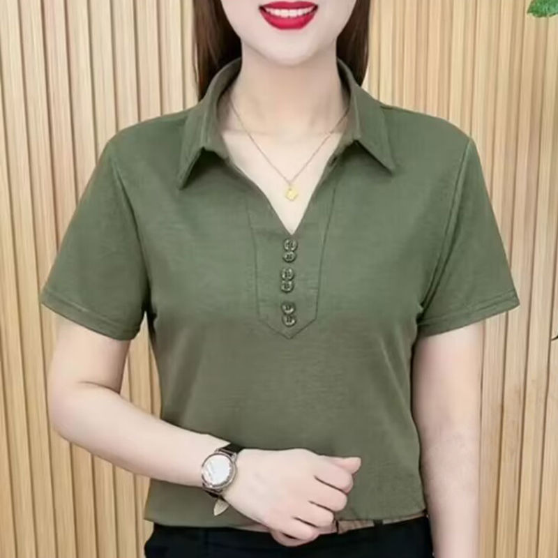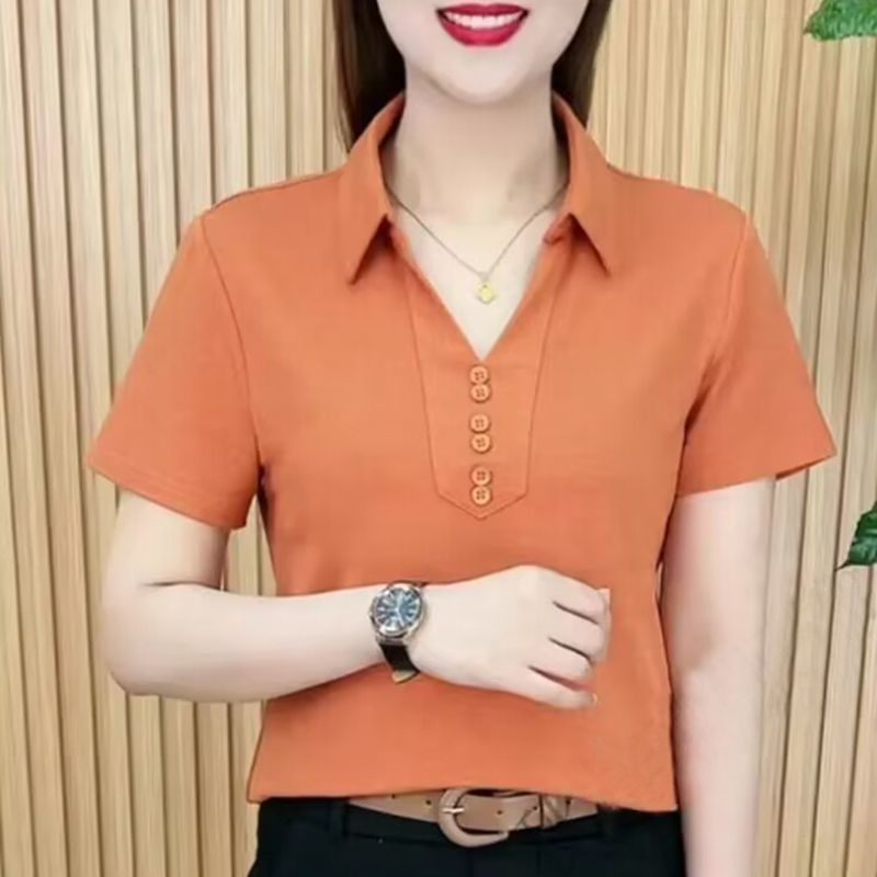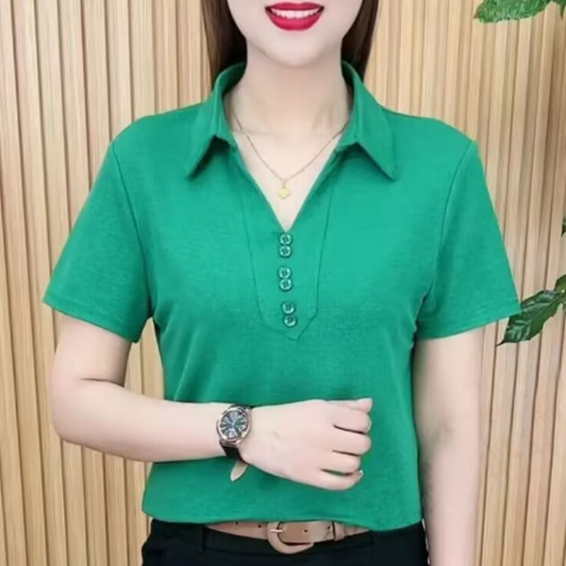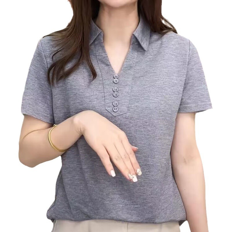 | nameOriginal | Summer Short-sleeved Shirt Collar T-shirt Top Women's Ice Silk Stylist Age-reducing Base Shirt All-match V-neck Age-reducing POLO Shirt Women |