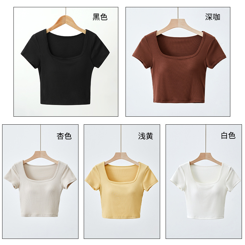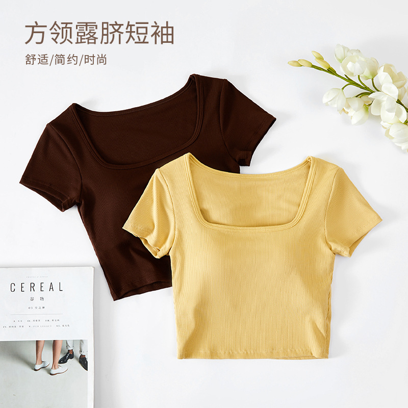 | nameOriginal | Summer short with chest pad one-piece navel square collar short sleeve Cup bottoming shirt casual sports women's inner T-shirt |