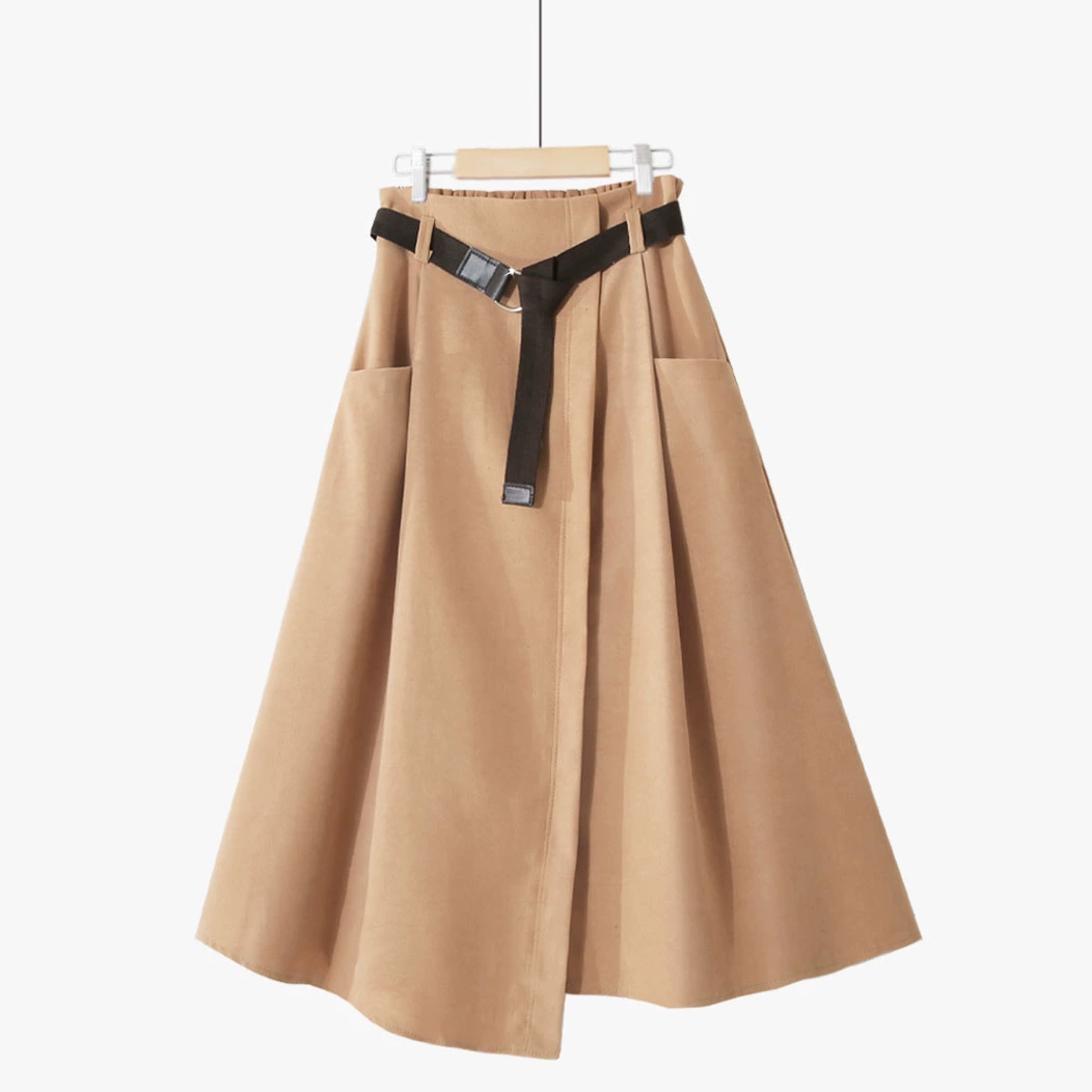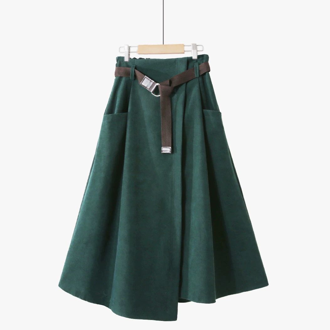 | nameOriginal | Summer simple corduroy college pocket a-line skirt belt |