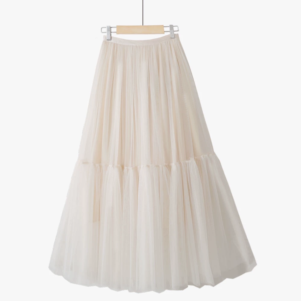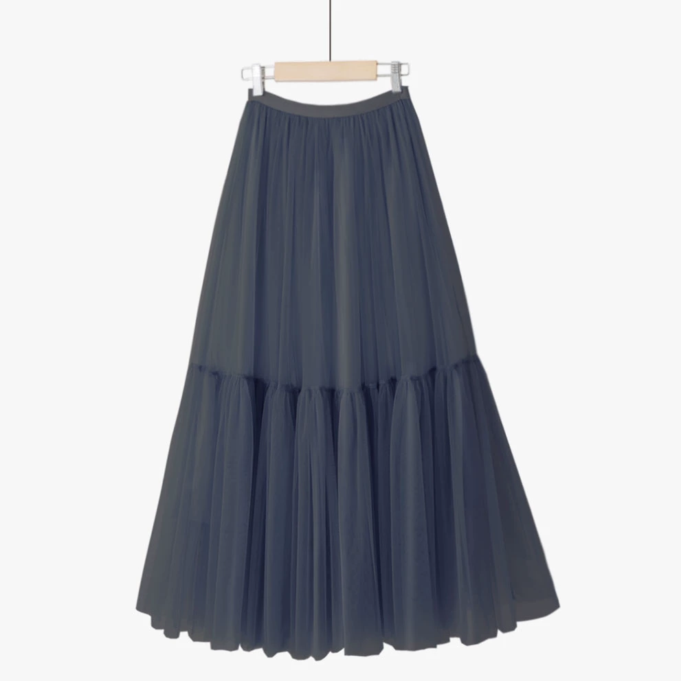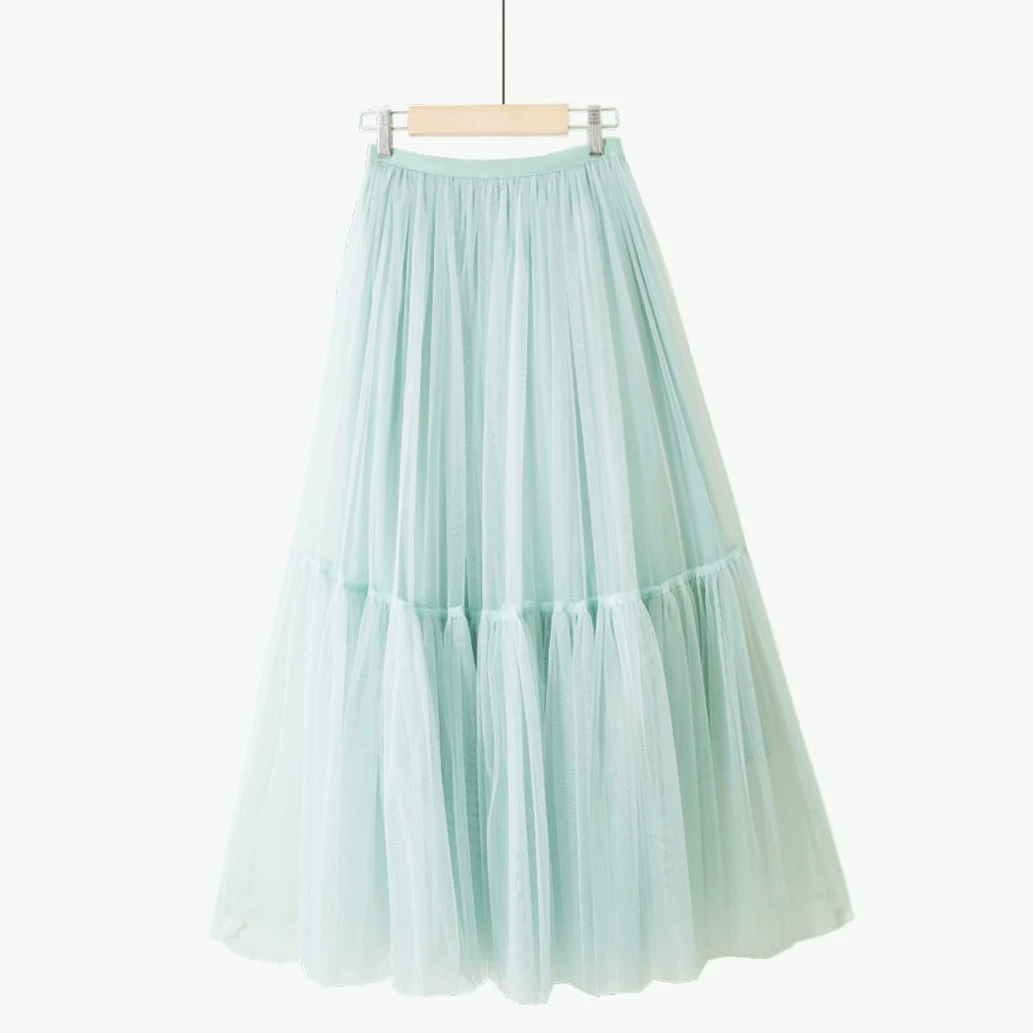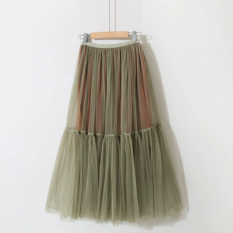 Summer simple fairy mid-length spliced ​​puffy mesh