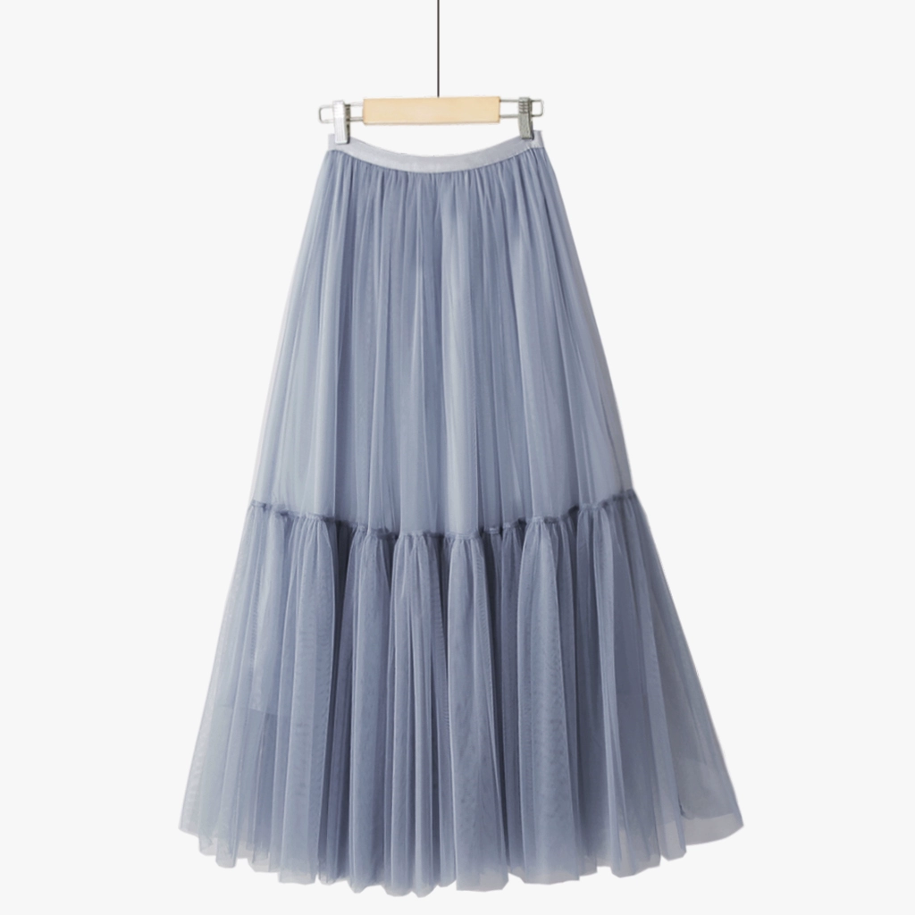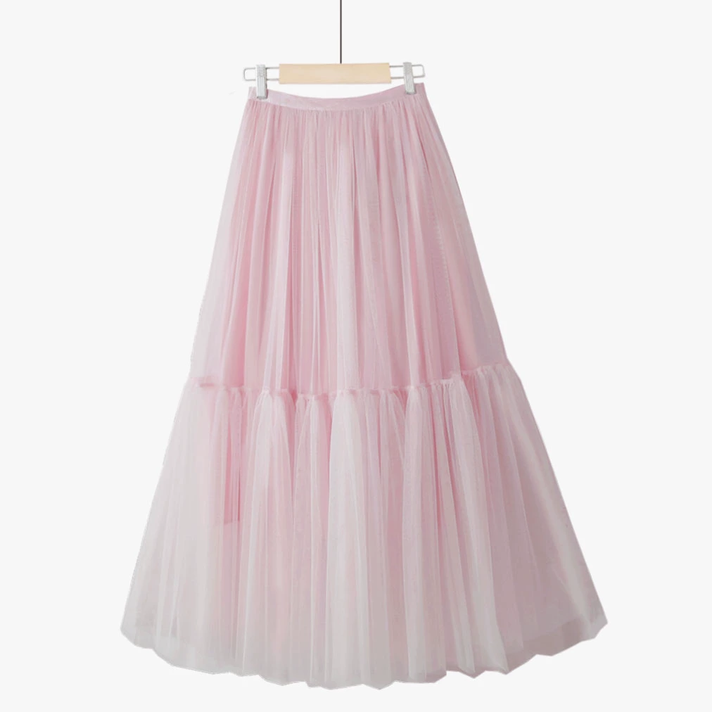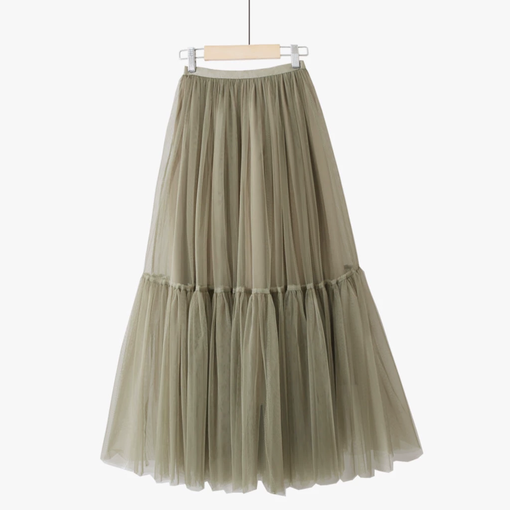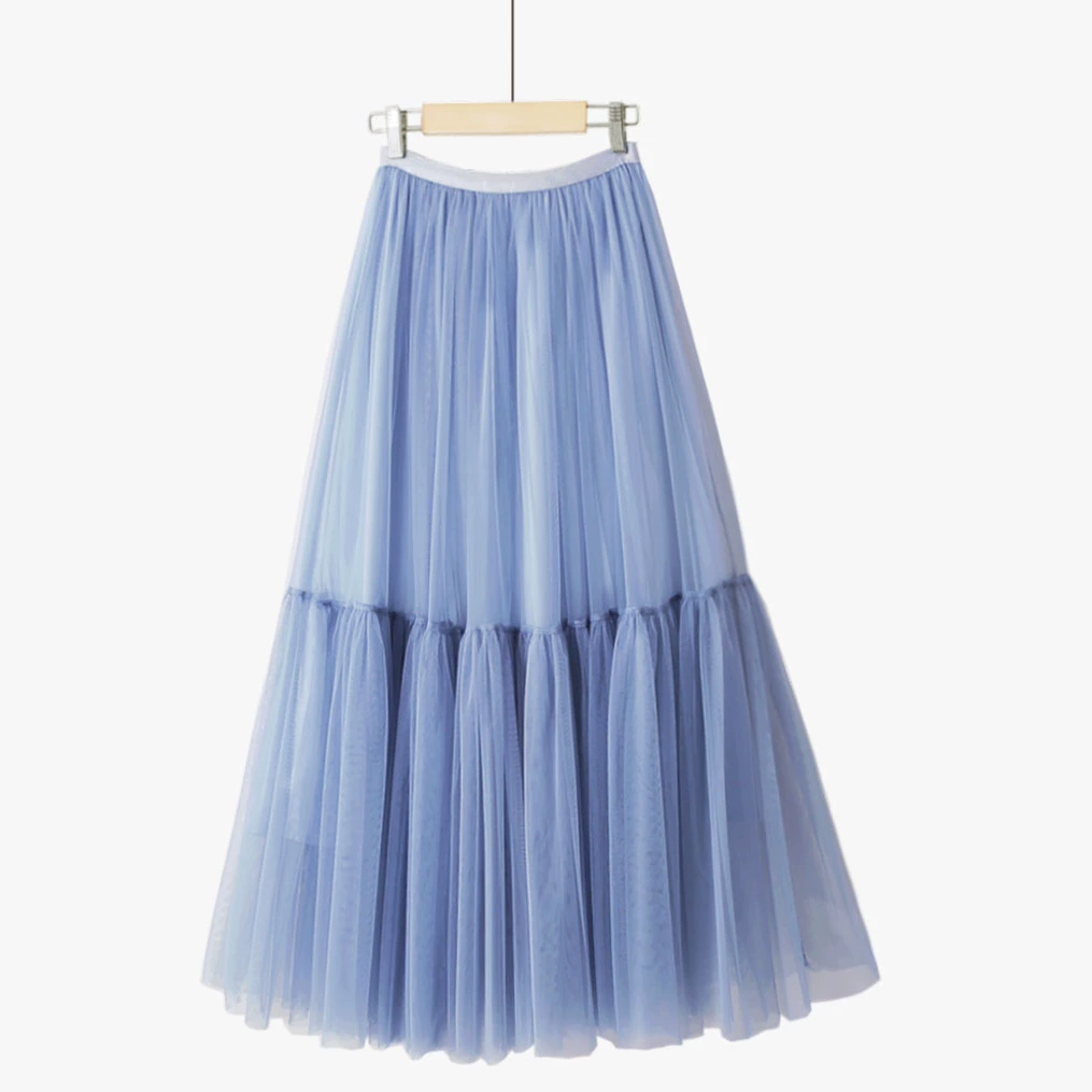 Summer simple fairy mid-length spliced ​​puffy mesh