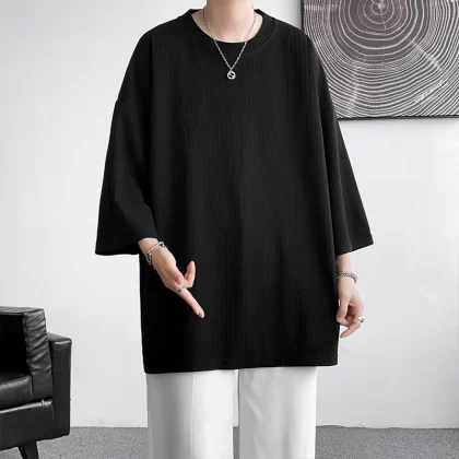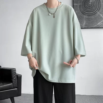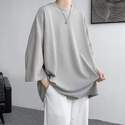 nameOriginal | Summer simple off-shoulder ice silk short-sleeved T-shirt for boys casual bottoming loose large size three-quarter sleeve T-shirt for fat people |