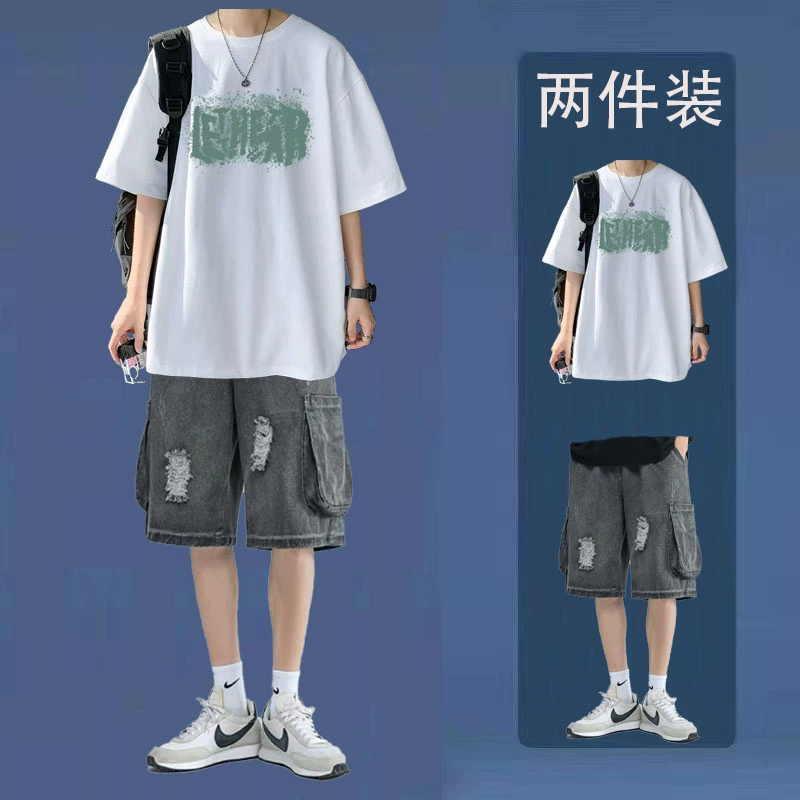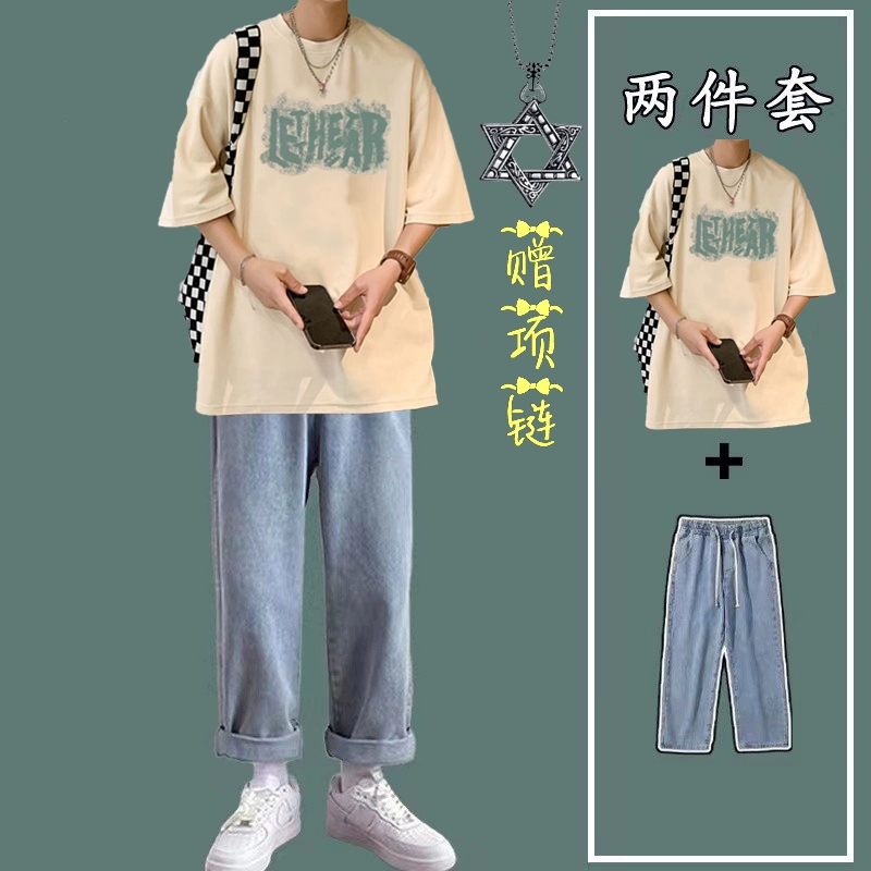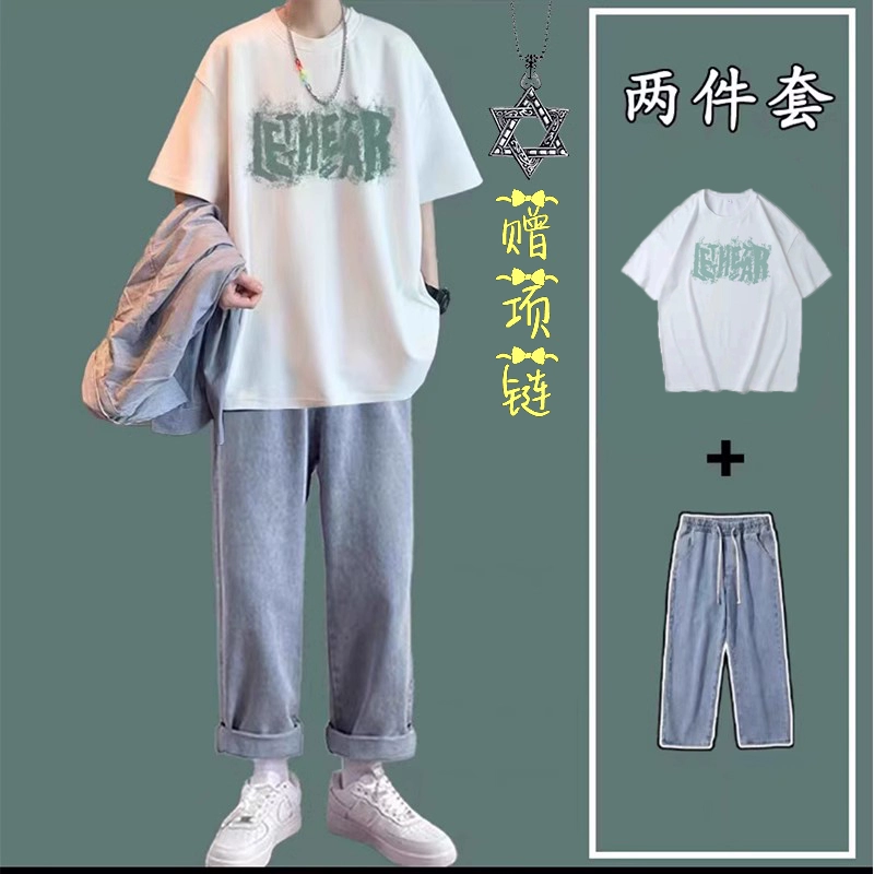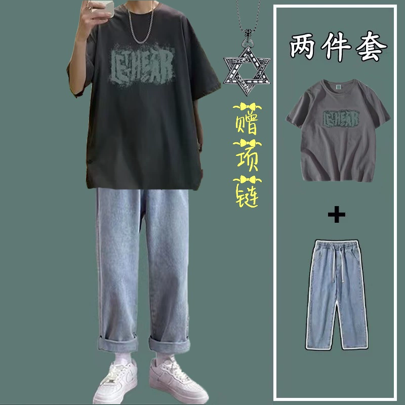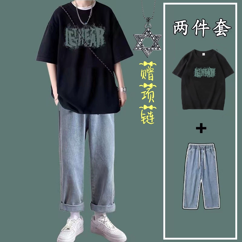 | nameOriginal | Summer simple straight jeans two piece short sleeve suit |