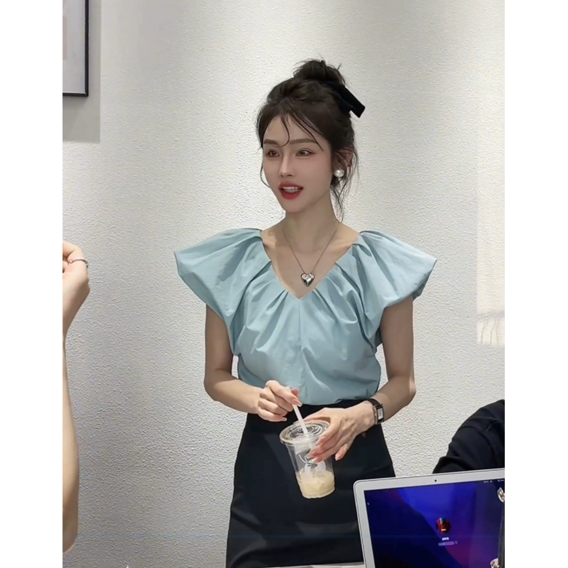 | nameOriginal | Summer sleeveless blue V-neck t-shirt tops for women 2024 summer new style this year's popular sexy vest tops for women |