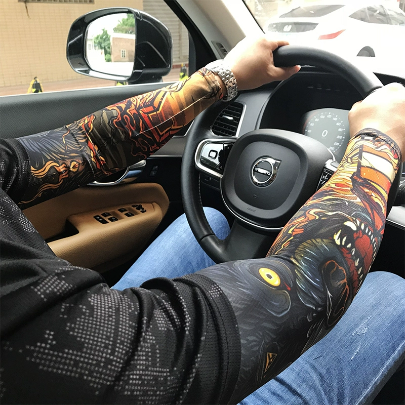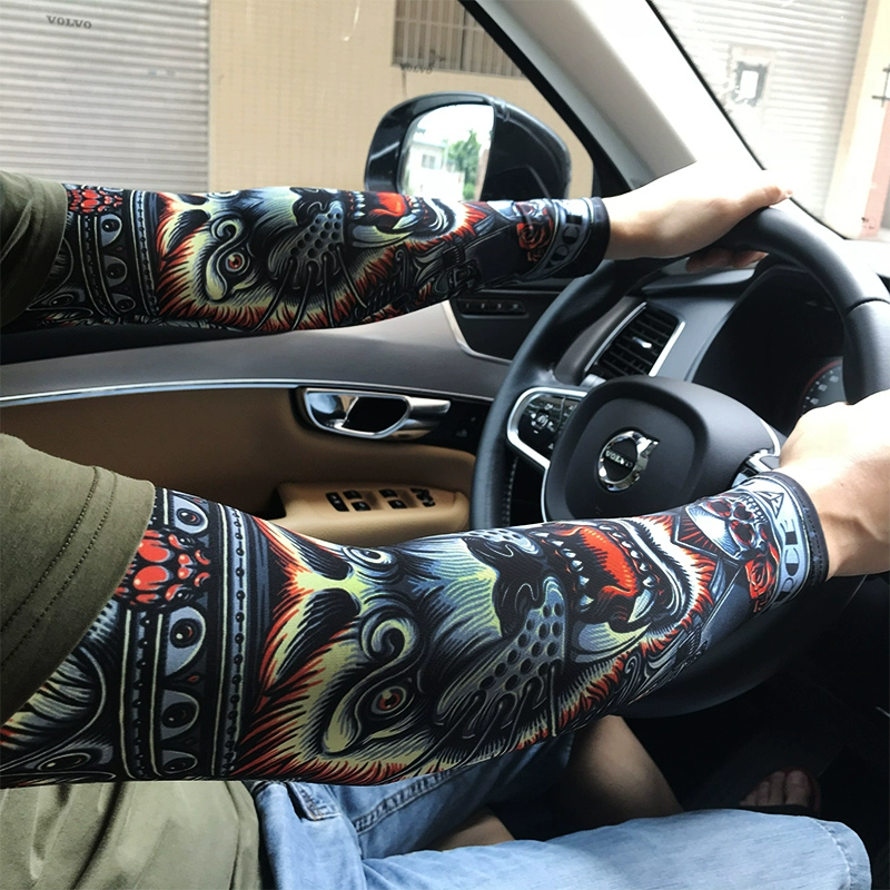 Summer sleeves, ice silk, men's floral arm sleeves, sun protection sleeves, men's breathable tattoo arm guards, driving sun protection sleeves, men's
