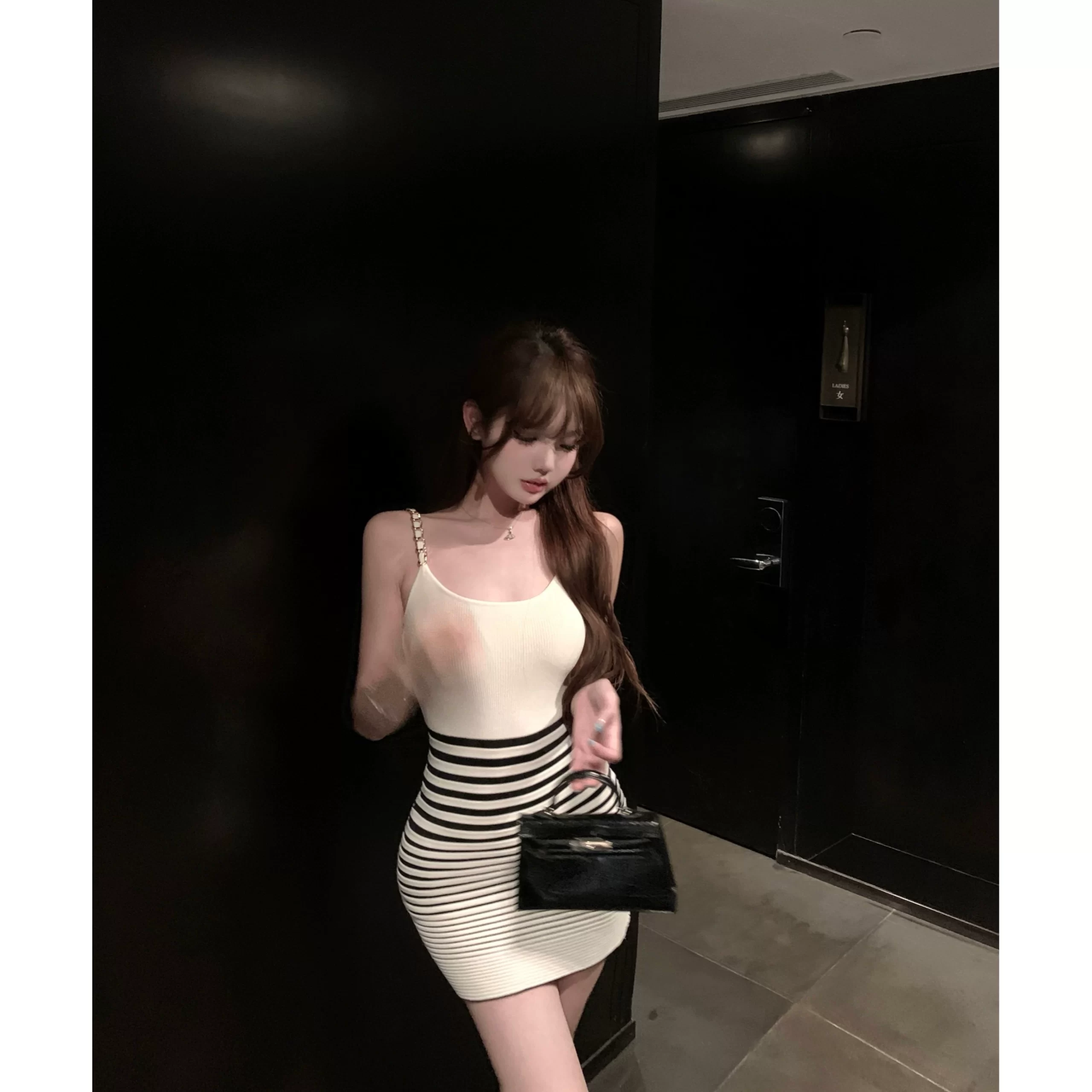 | nameOriginal | Summer slim-fitting metal chain suspender knitted dress |