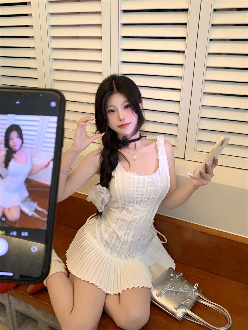 | nameOriginal | Summer slim pleated lace lace suspender dress |