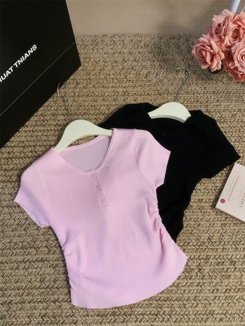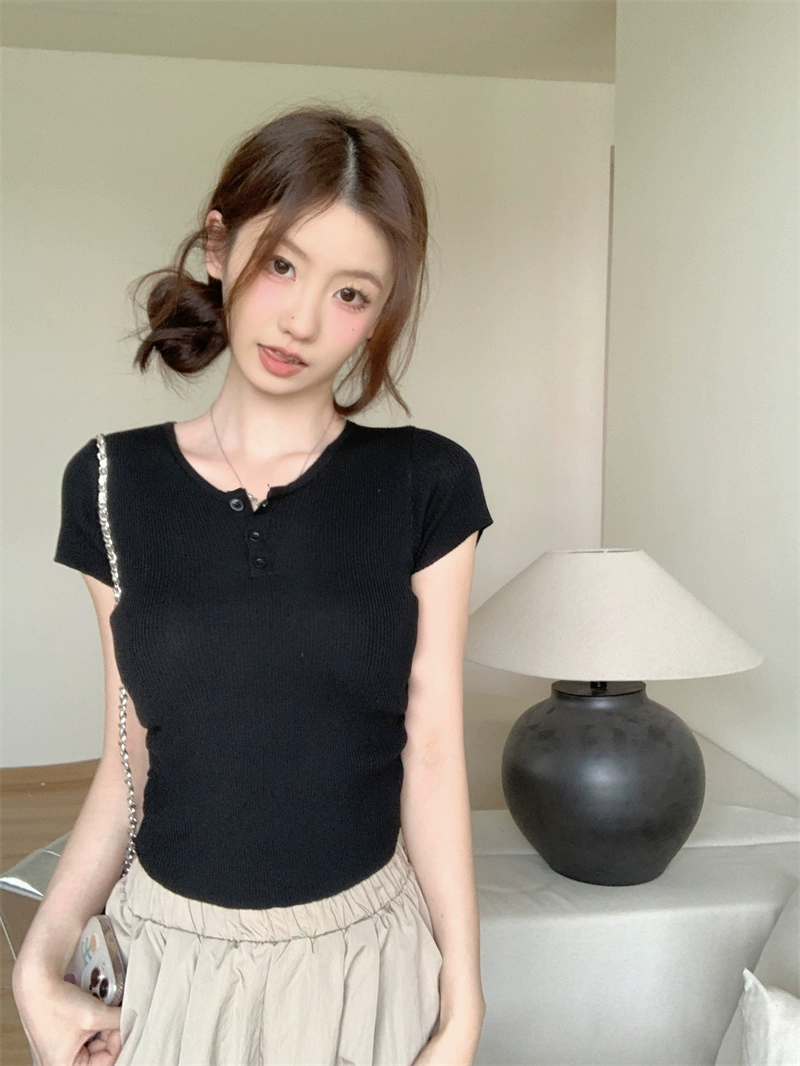 | nameOriginal | Summer slim round neck solid color top knitted short sleeves |
