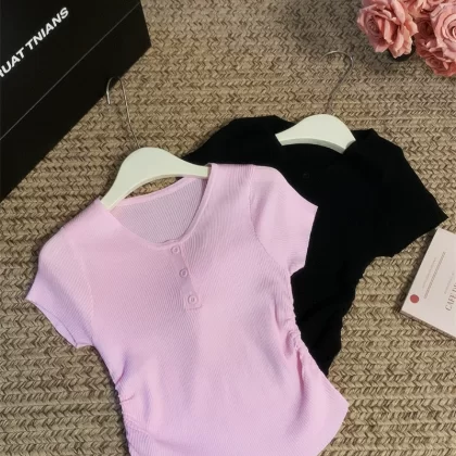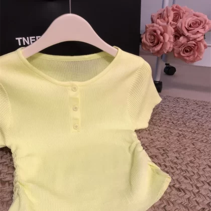 | nameOriginal | Summer slim round neck solid color top knitted short sleeves |