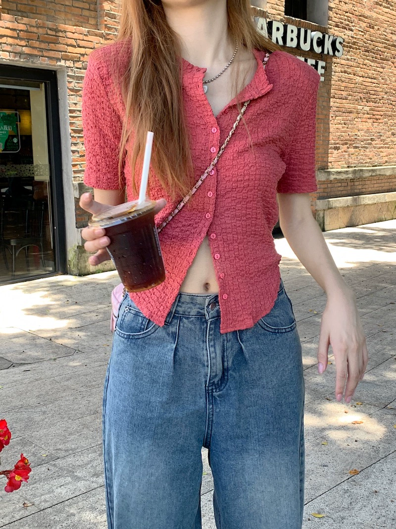 Summer Slim Shoulder Padded Bottoming Top Short Sleeve T-Shirt