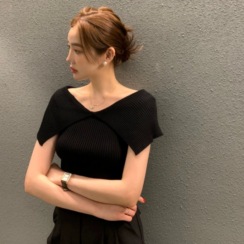 Summer Slim Tops, Versatile Knitted Sweaters T-Shirts