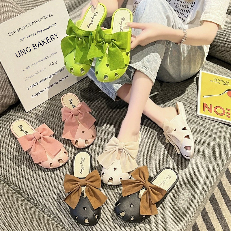 | nameOriginal | Summer slippers women's popular hole bow toe cap outer wear thick bottom cute princess style non-slip beach sandals |