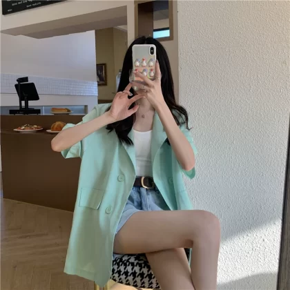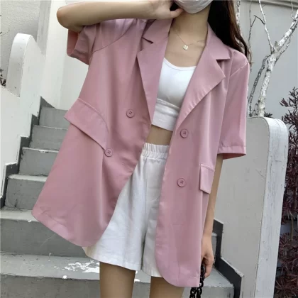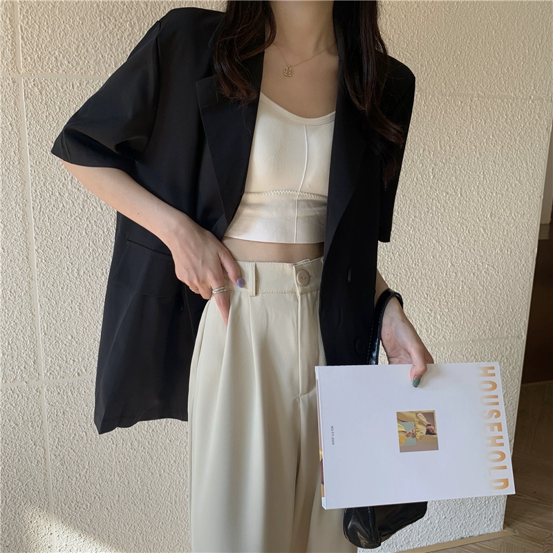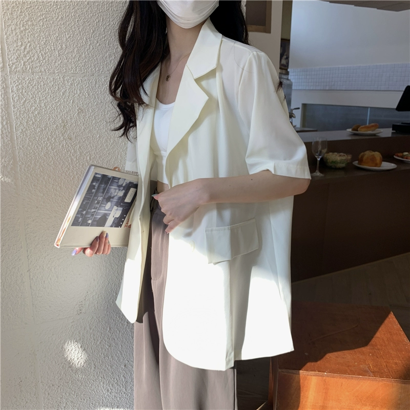 Summer slit mid-length loose casual top with short sleeves