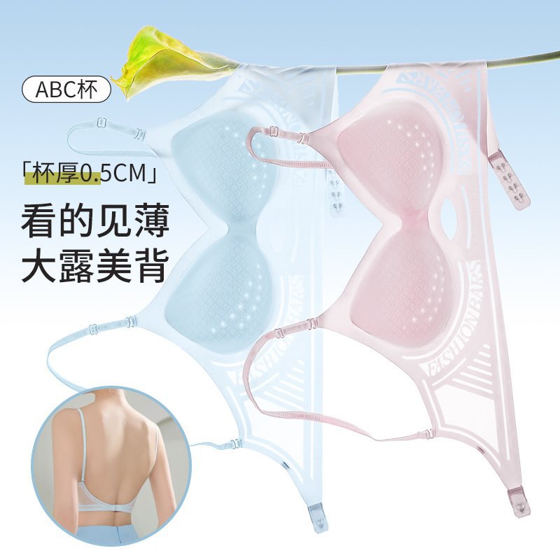 Summer Small Chest Gathering Beautiful Back Underwear Women’s Backless Bra Large U-Back White Breathable Soft Support Traceless Bra