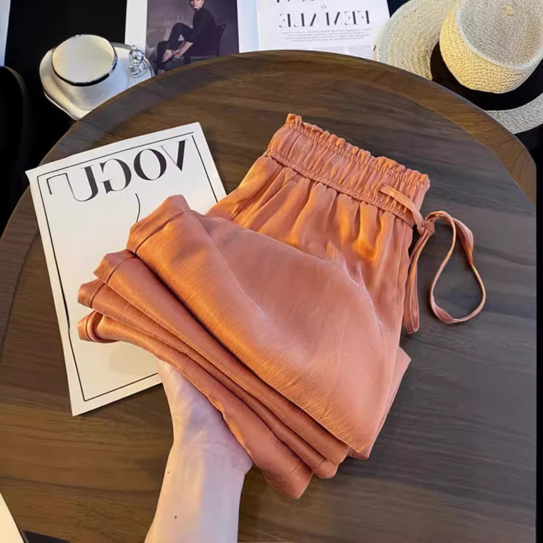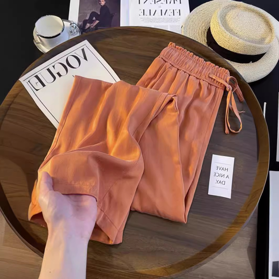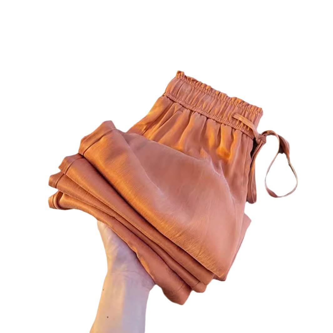 Summer Small Chic Unique Satin Loose Waist Orange Wide Leg Pants High-Waist Copper Ammonia Silk Casual Pants