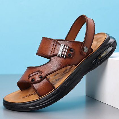 Summer Small Size 35 Men’s Sandals Trendy Top Layer Cowhide Sandals Men’s Casual Driving Leather Sandals Extra Large 48