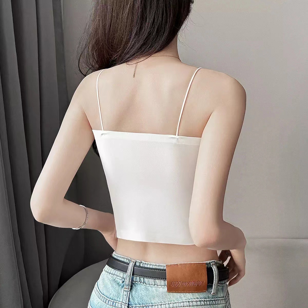 | nameOriginal | Summer Small Sling Vest-style Women's Inner Basing Outer Wear Beautiful Back Bra One-piece Bra with Chest Pad Top White |