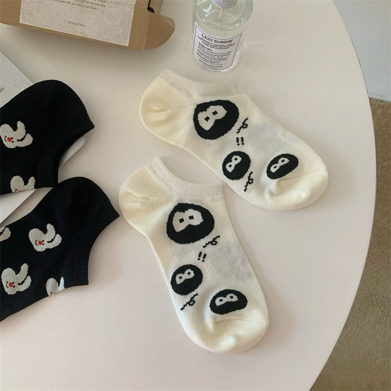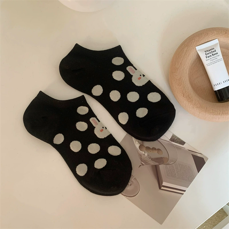 | nameOriginal | Summer socks for women, white polka dot boat socks, Japanese cartoon black and white rabbit cream socks, non-slip invisible socks |