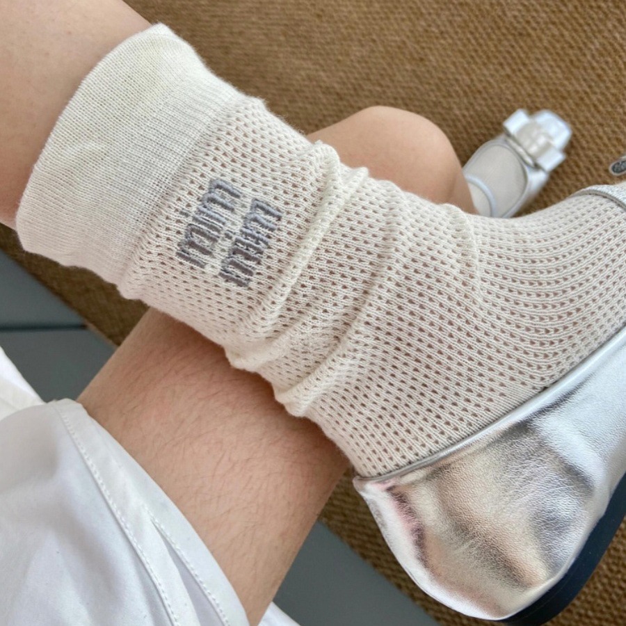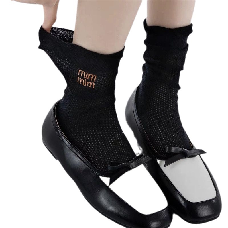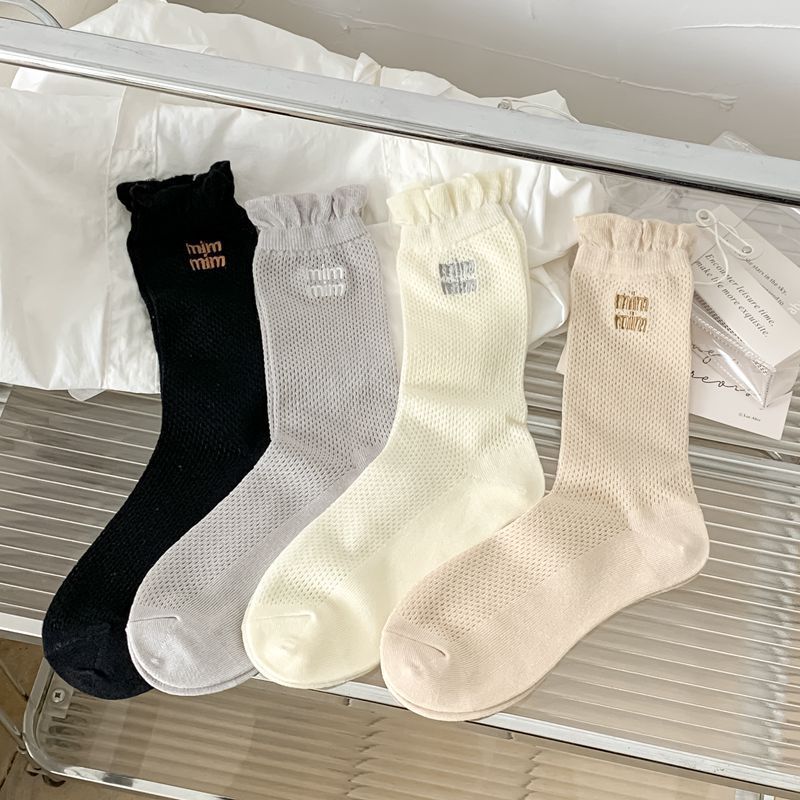 | nameOriginal | Summer Solid Color Embroidery Socks Women's White Middle Tube Thin Stacking Socks Miu Style Hollow Mesh Simple Cotton Stockings |