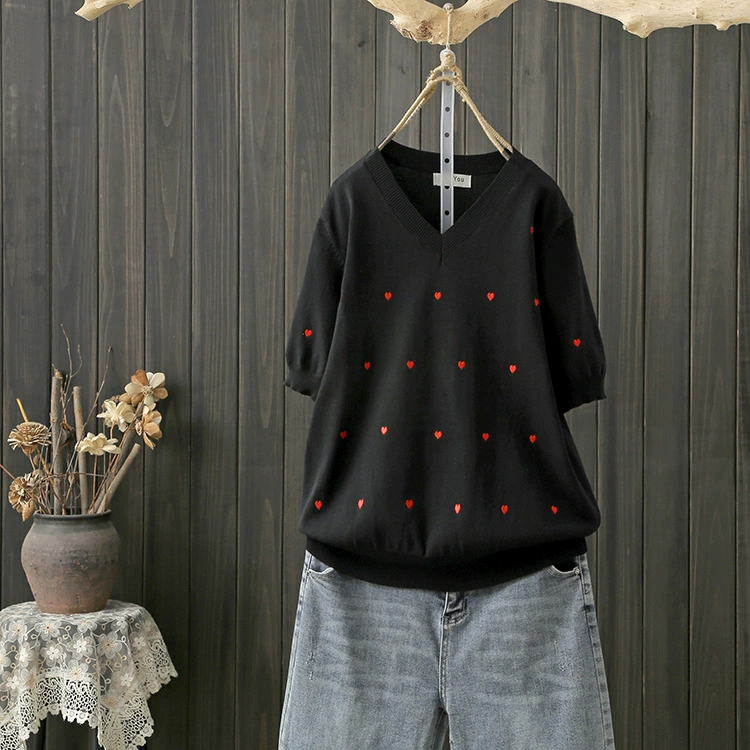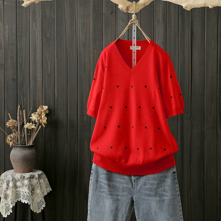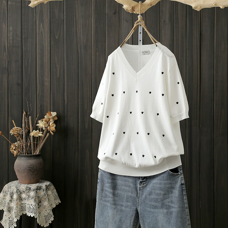 | nameOriginal | Summer solid color loose polka dot short-sleeved top V-neck T-shirt |