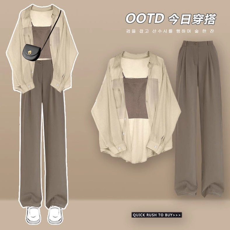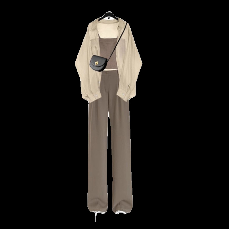 | nameOriginal | Summer Spice Girls Slimming Women's Small Royal Sister Style Chiffon Cardigan Sunscreen Camisole Wide Leg Pants Three-piece Set |