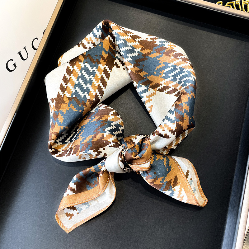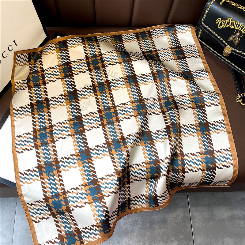 Summer spot Square garden Four Seasons universal Plaid decorative printed plain women’s gold scarf a generation of hair