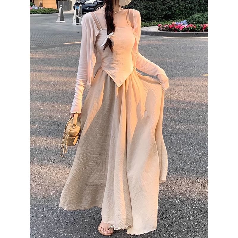 | nameOriginal | Summer, Spring and Autumn Cool Feeling Zen Wearing Bangle Suspender Thin Sunscreen Cardigan Small Coat Three-piece Dress for Children |