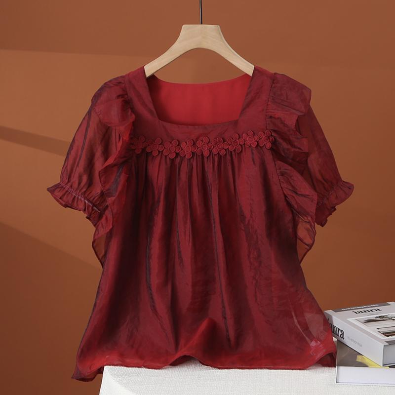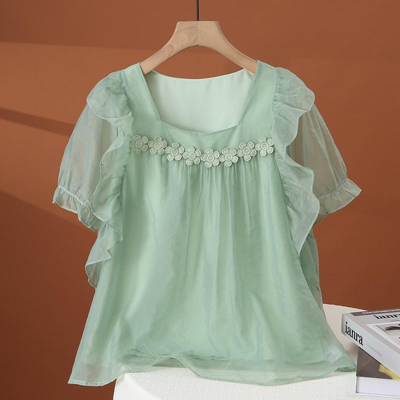 | nameOriginal | Summer Square Collar Chiffon Shirt Women's Short Sleeve 2024 New Fashion Stylish Lace Small Shirt Short Top |