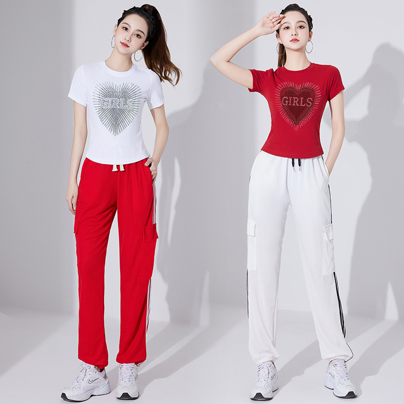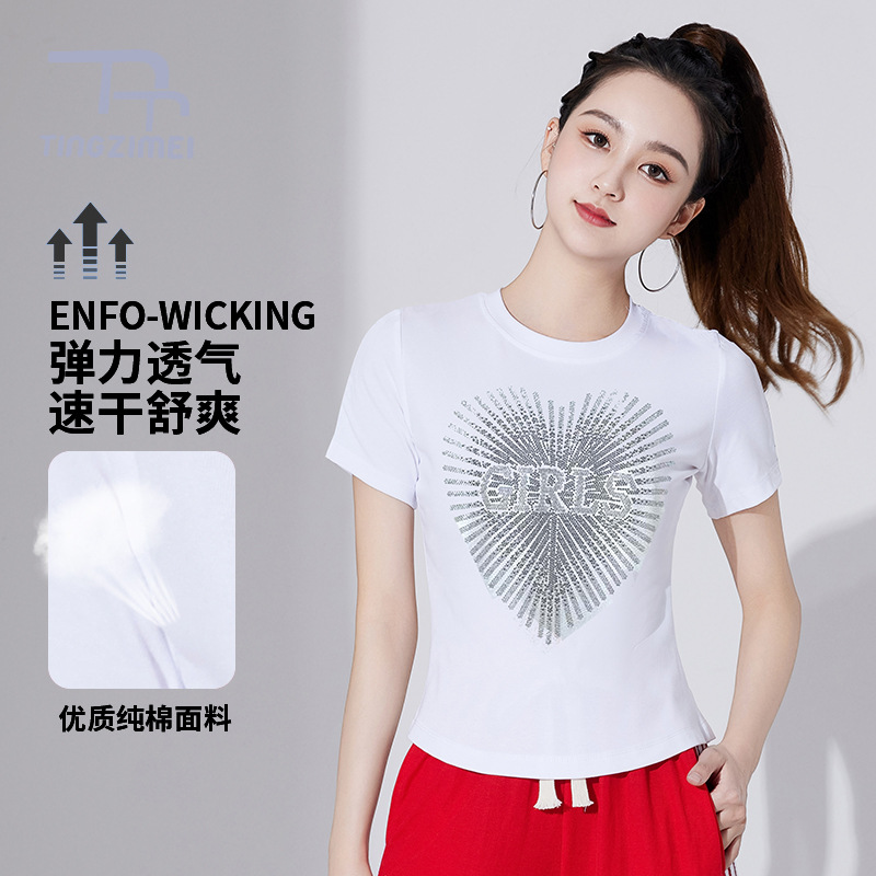 | nameOriginal | Summer Square Dance Clothing New Short-sleeved Hot Drilling Top Pure Cotton Group Fitness Jumping Sports Running Casual Wear |