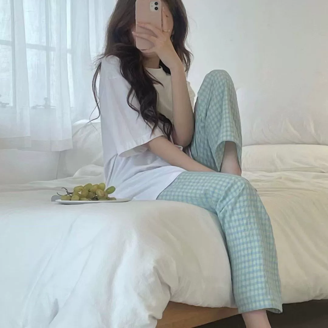 | nameOriginal | Summer student ins home elastic waist thin pajamas |