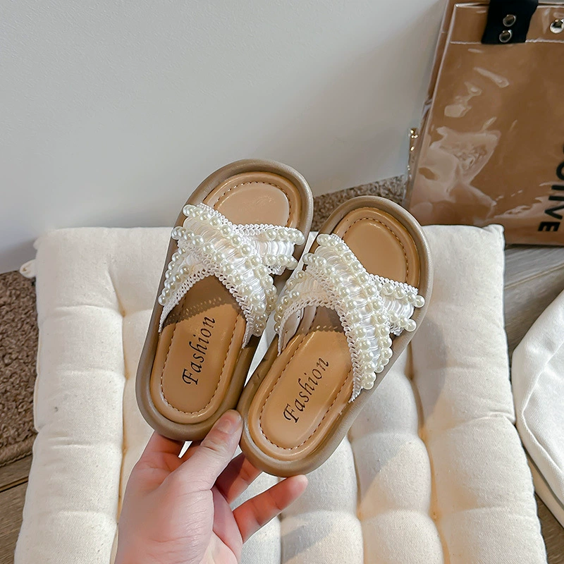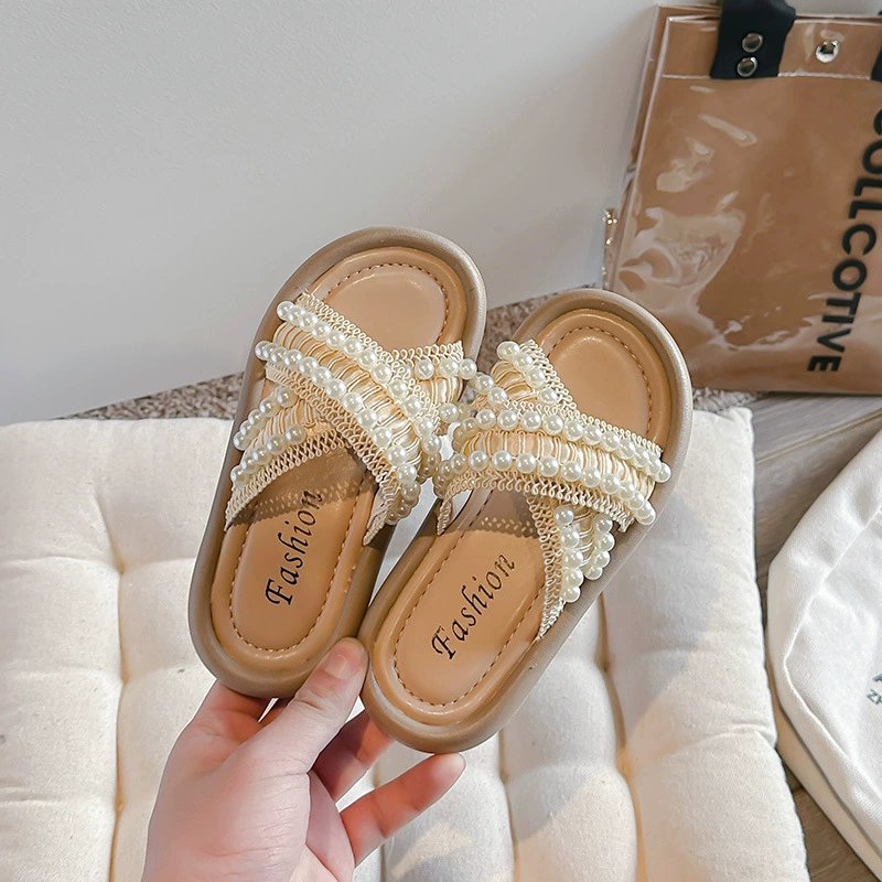 Summer small fragrance style fashionable outside wear crossed girls slippers