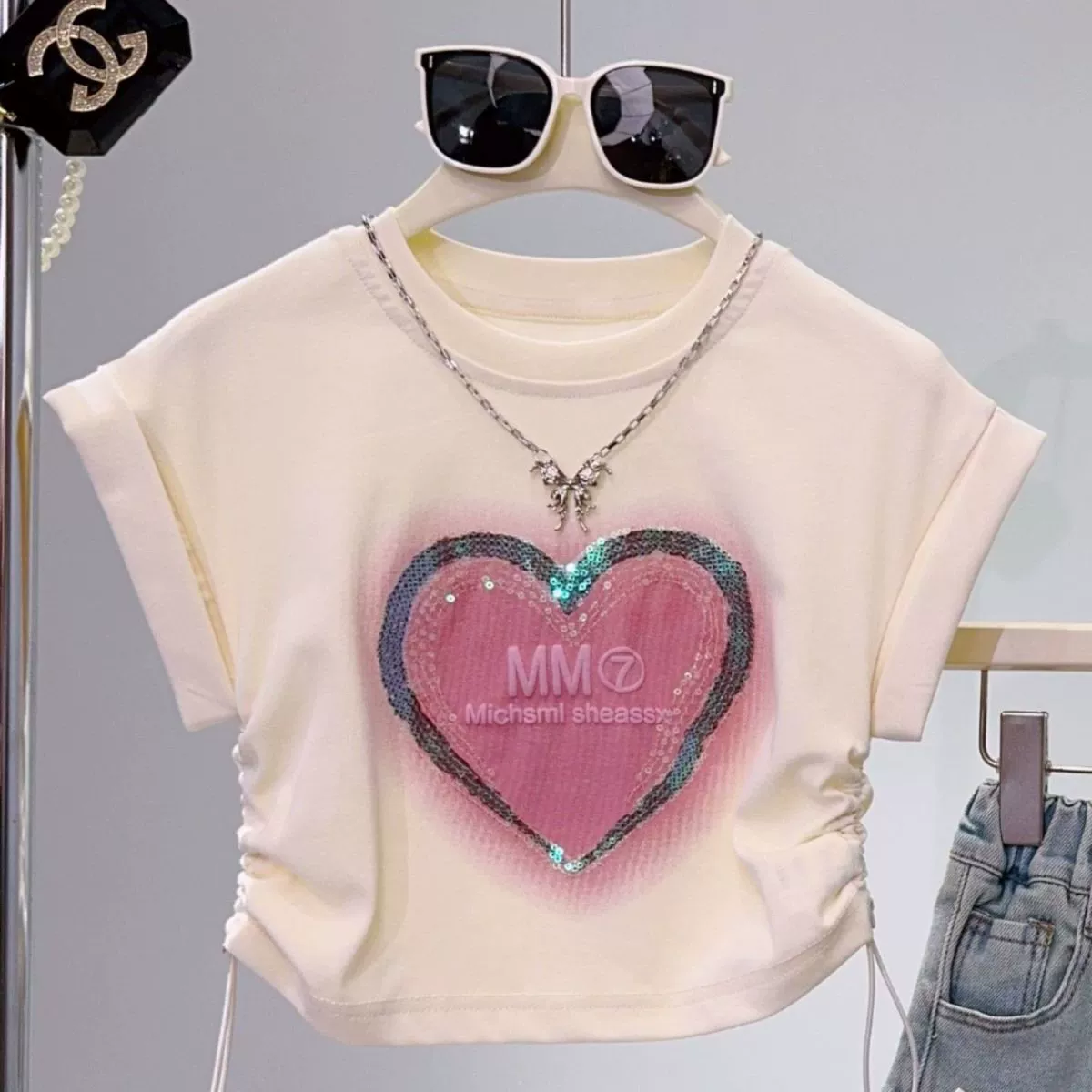 | nameOriginal | Summer style sequined denim pleated short-sleeved T-shirt |