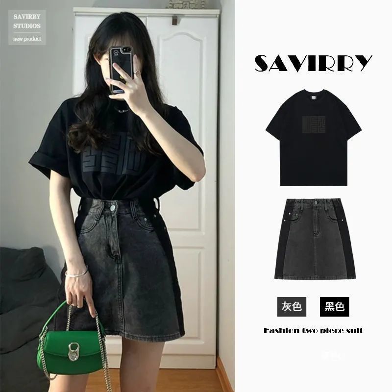 | nameOriginal | Summer suit Women's 2024 New plus size Fashion Light Mature Style Salt Wear Design Denim Dress Two-piece Set |