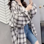 | nameOriginal | Summer sun protection blue women's butt-covering plaid shirt |