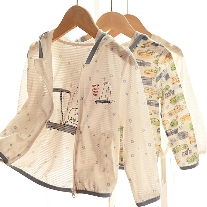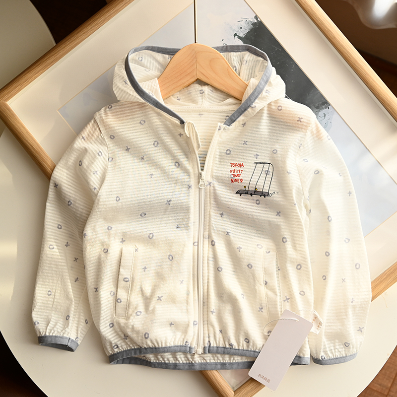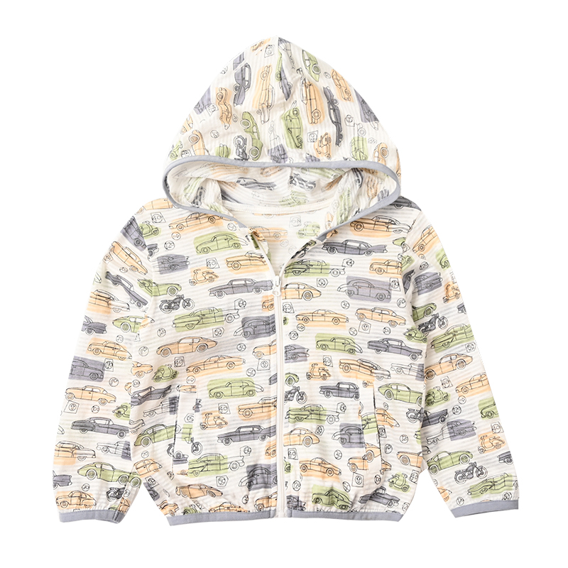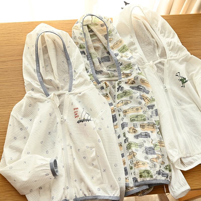 Summer Sun Protection Clothing Children's Cotton Hooded Cartoon Bamboo Cotton Cardigan Jacket for Boys and Girls