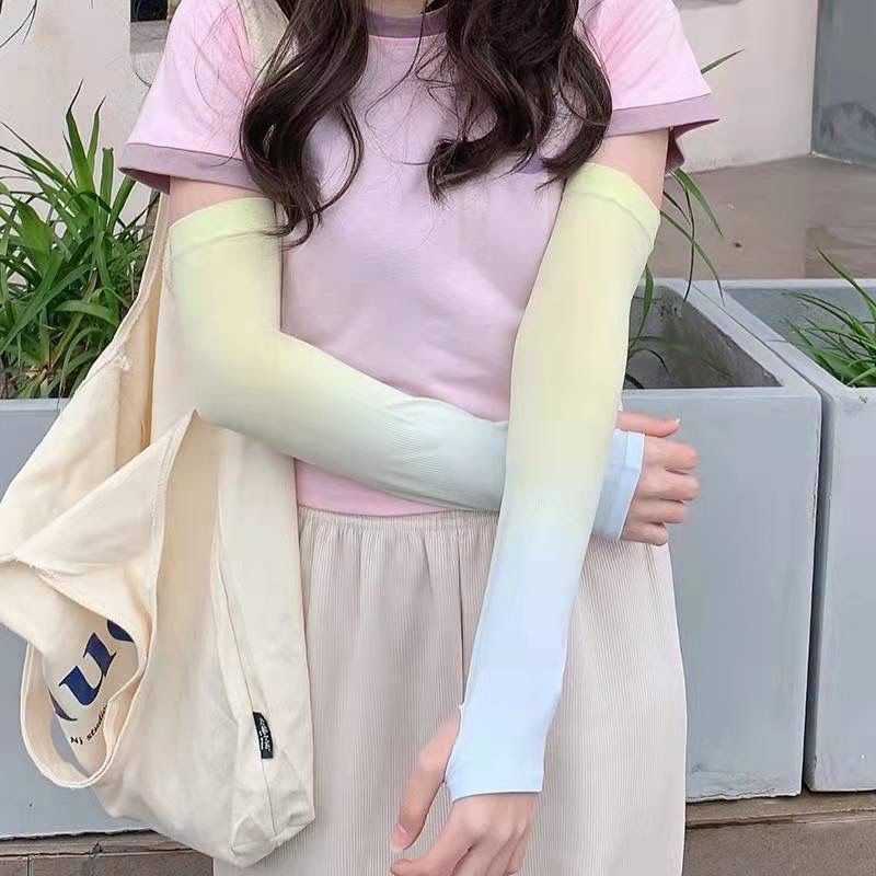 | nameOriginal | Summer Sun Protection Ice Sleeve Gradient Ice Silk Hand Sleeve Rasher Sleeve UV-proof Finger Leakage Loose Arm Thin Men and Women |