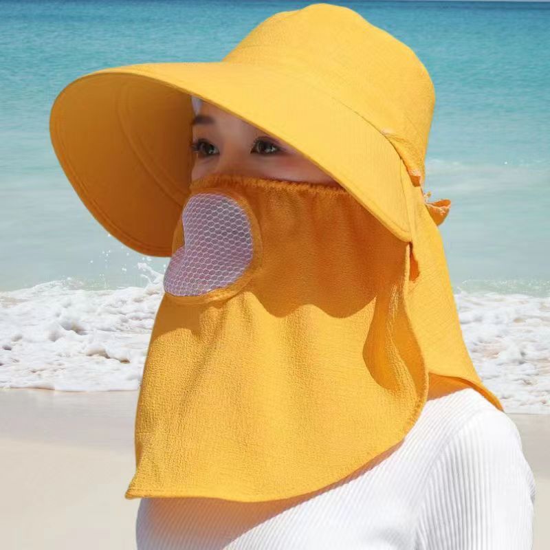 Summer Sunscreen Hat Women's Cycling Big-brimmed Hat Outdoor Tea-picking Hat for Field Farming Face-covering Hat Sunshade Shawl Hat Mask