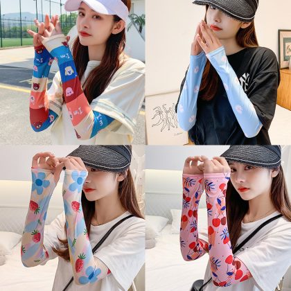 Summer Sunscreen Ice-cool Sleeve UV Cyber-red Sleeve Thin Driving Ice Silk Hand Sleeve Arm Guard Women’s Summer Gloves Thin