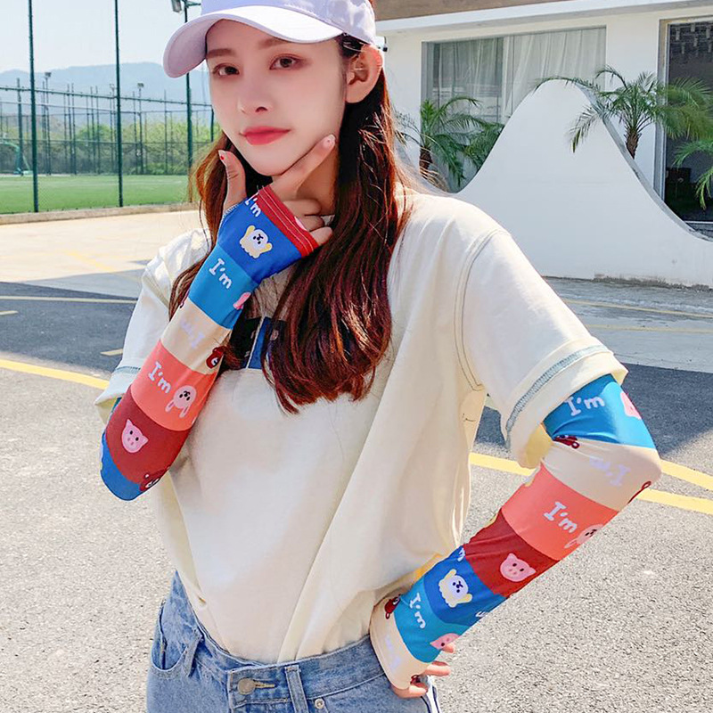 Summer Sunscreen Ice-cool Sleeve UV Cyber-red Sleeve Thin Driving Ice Silk Hand Sleeve Arm Guard Women's Summer Gloves Thin