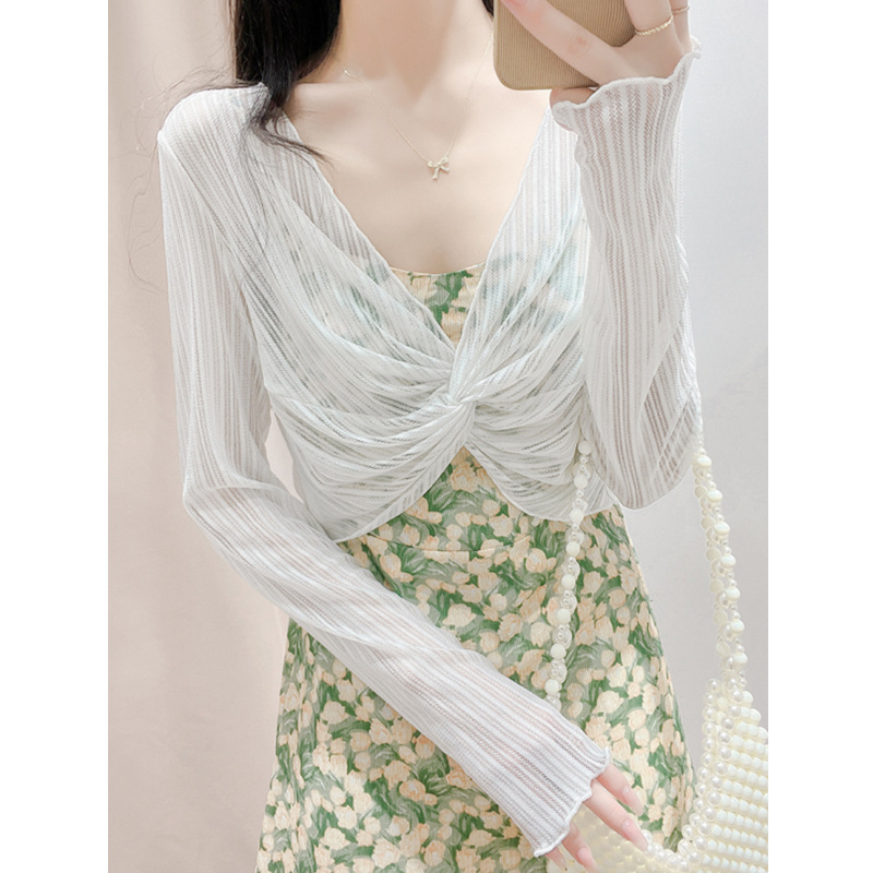 | nameOriginal | Summer Sunscreen Lace Shawl Women's Slip Skirt Overshirt Short Gauze Chic Hollow Mesh Top |