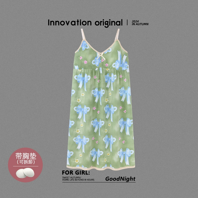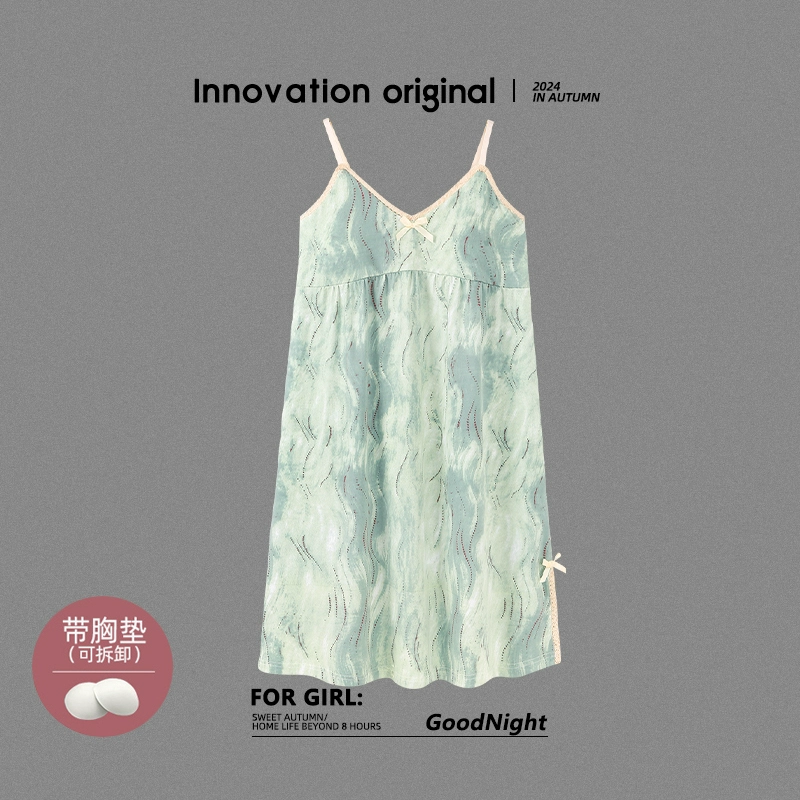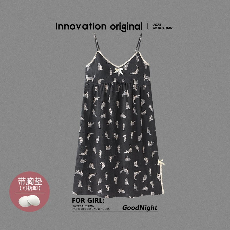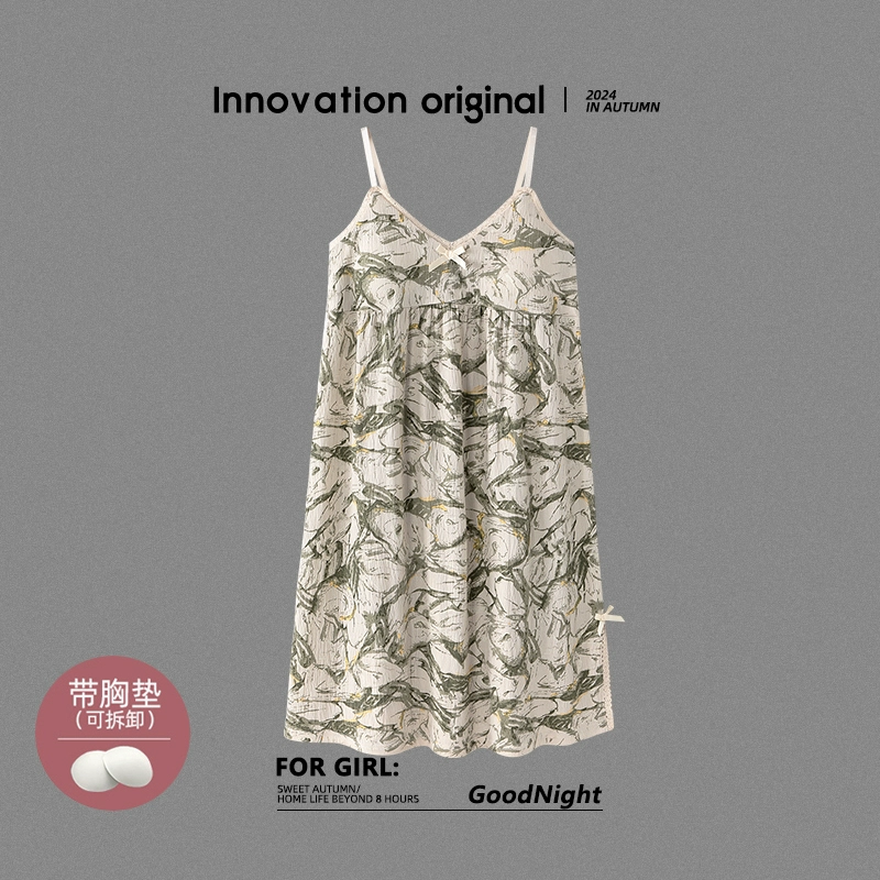 | nameOriginal | Summer suspender nightgown for women with breast pads, pure cotton sleeveless pajamas for summer girls, sexy retro floral home clothes |
