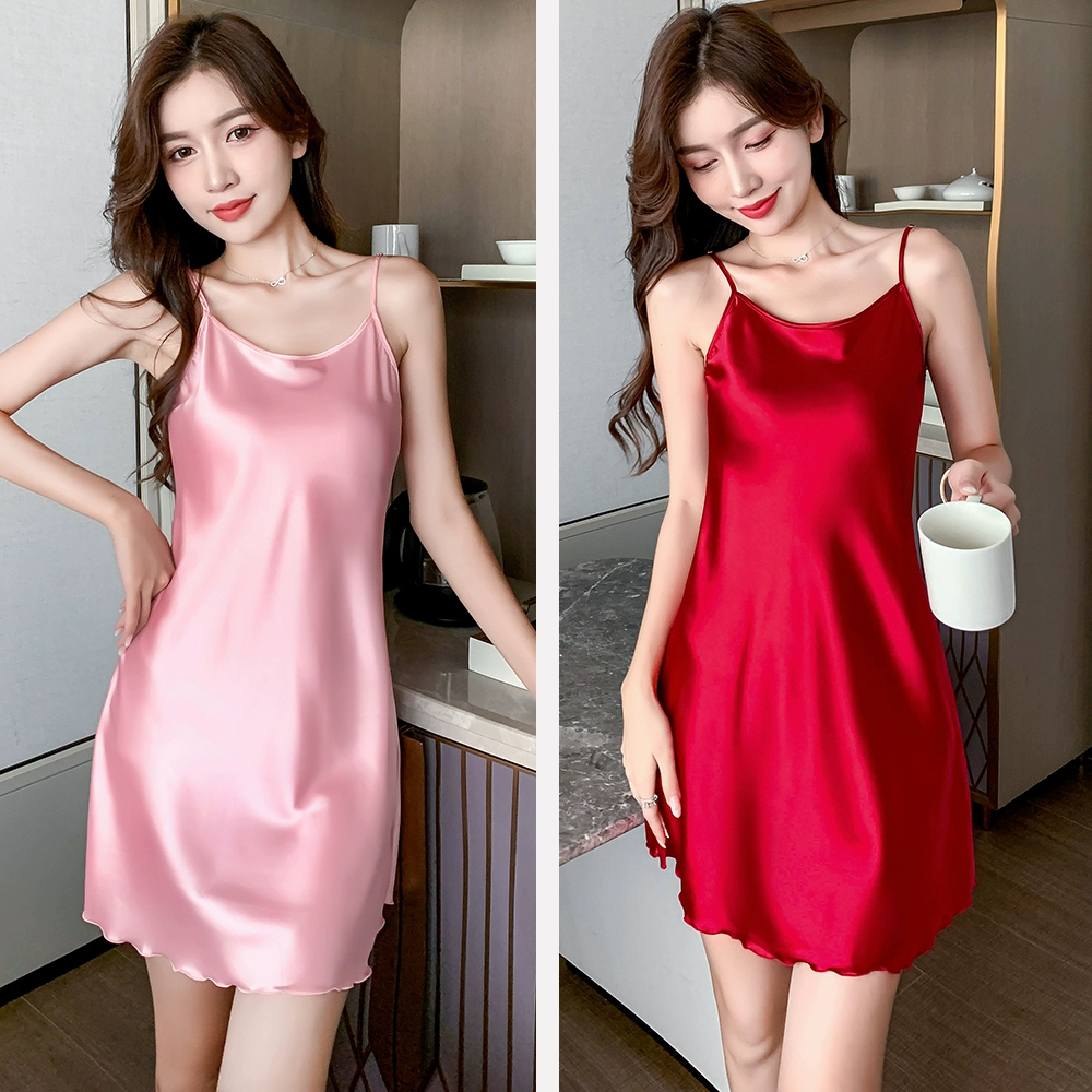 | nameOriginal | Summer suspender red sexy silk pajamas with beautiful back |