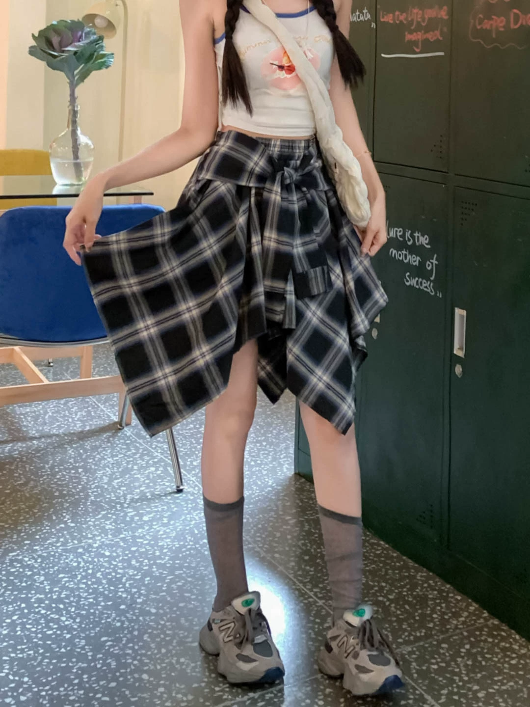 | nameOriginal | Summer sweet and spicy design irregular plaid skirt |
