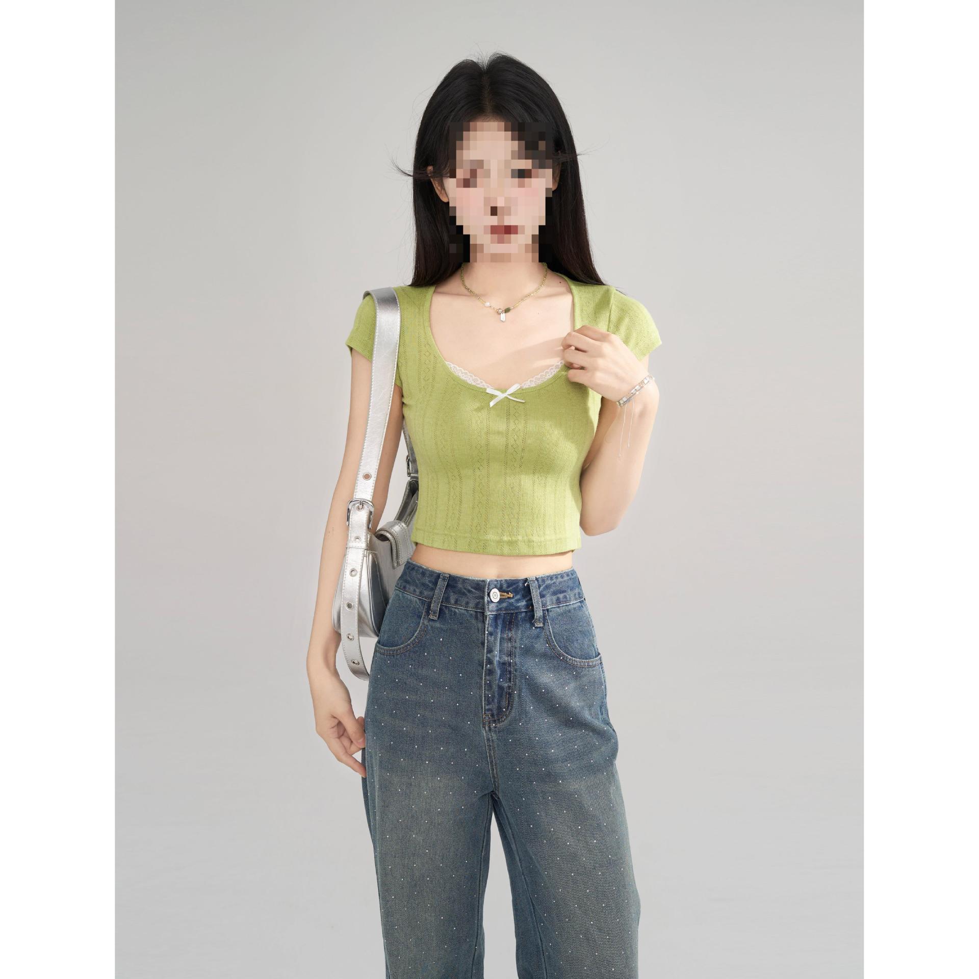 | nameOriginal | Summer Sweet French Style All-match Cool Sense Hollow Square Collar Sling Knitted Top |