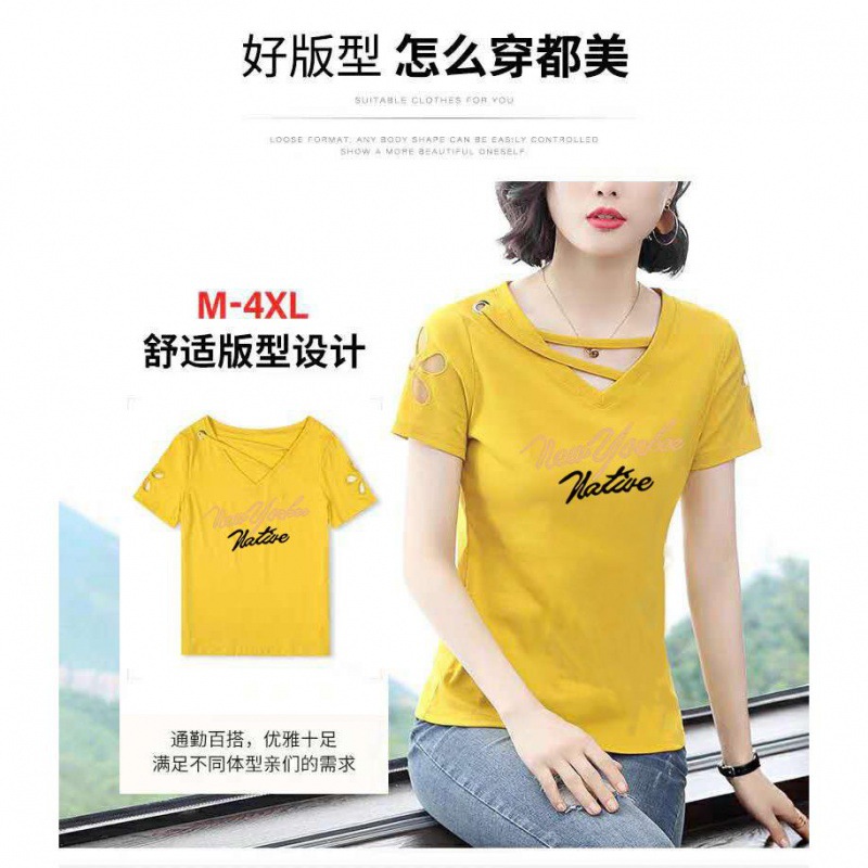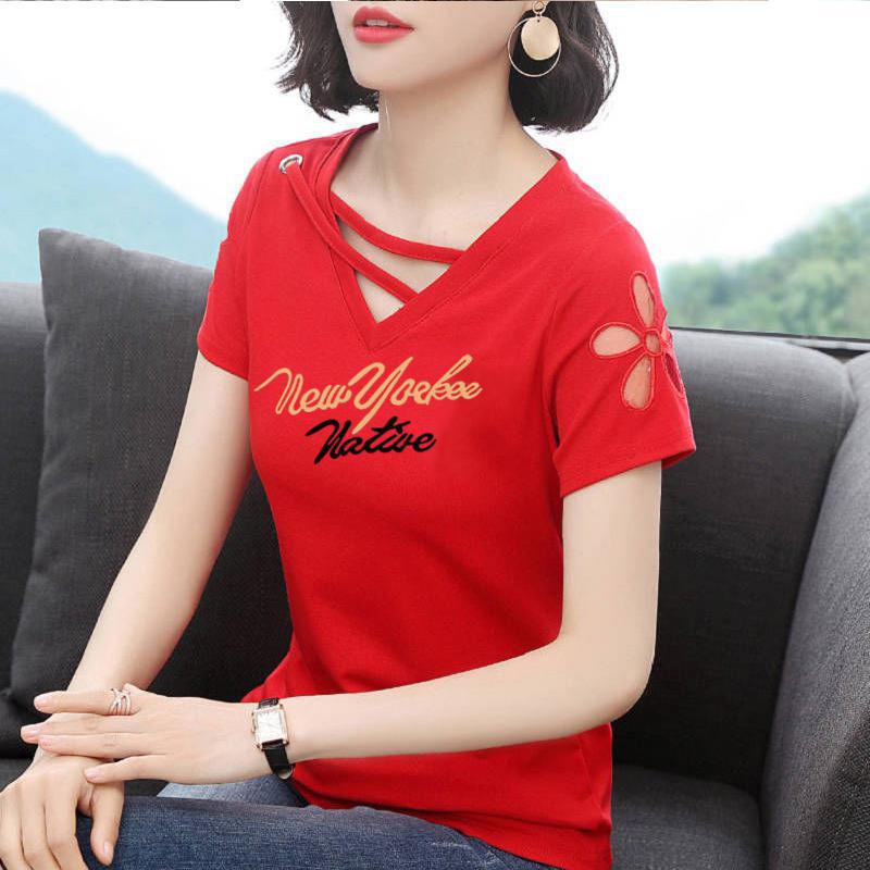 | nameOriginal | Summer T-shirt Women's Short-sleeved V-neck 2024 New Korean-style Slim-fit Hollow-out Print Elegant Mother's T-shirt Top |