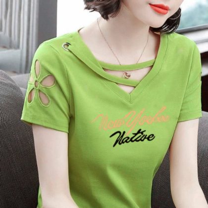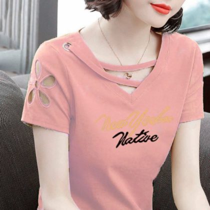 | nameOriginal | Summer T-shirt Women's Short-sleeved V-neck 2024 New Korean-style Slim-fit Hollow-out Print Elegant Mother's T-shirt Top |