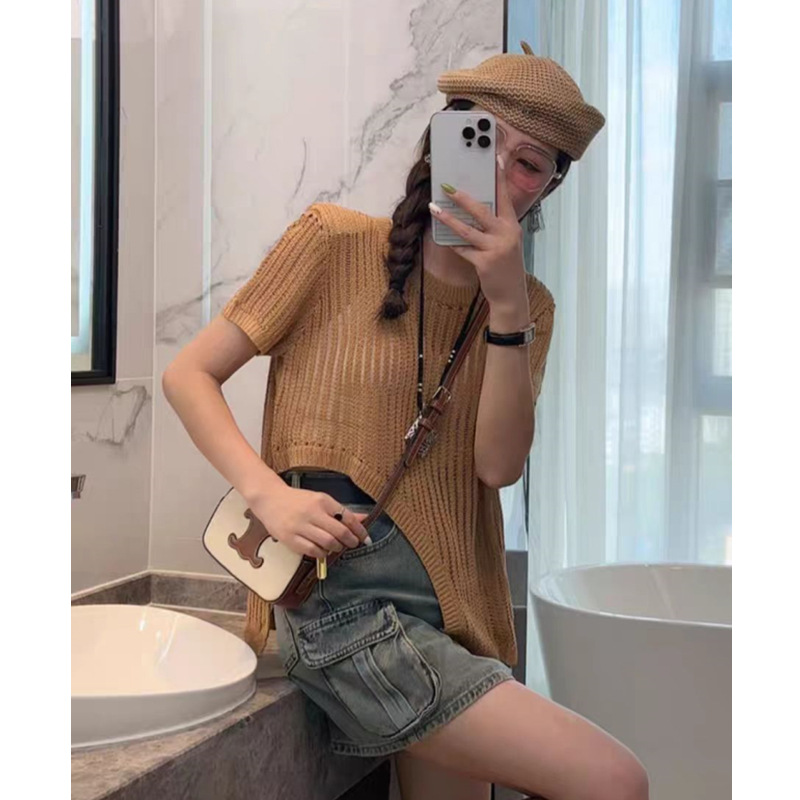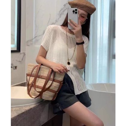 | nameOriginal | Summer Thin Breathable Hollow Knitted Sweater Women's 2024 New Pullover Round Neck Ice Silk Knitted Short-sleeved T-shirt Top |
